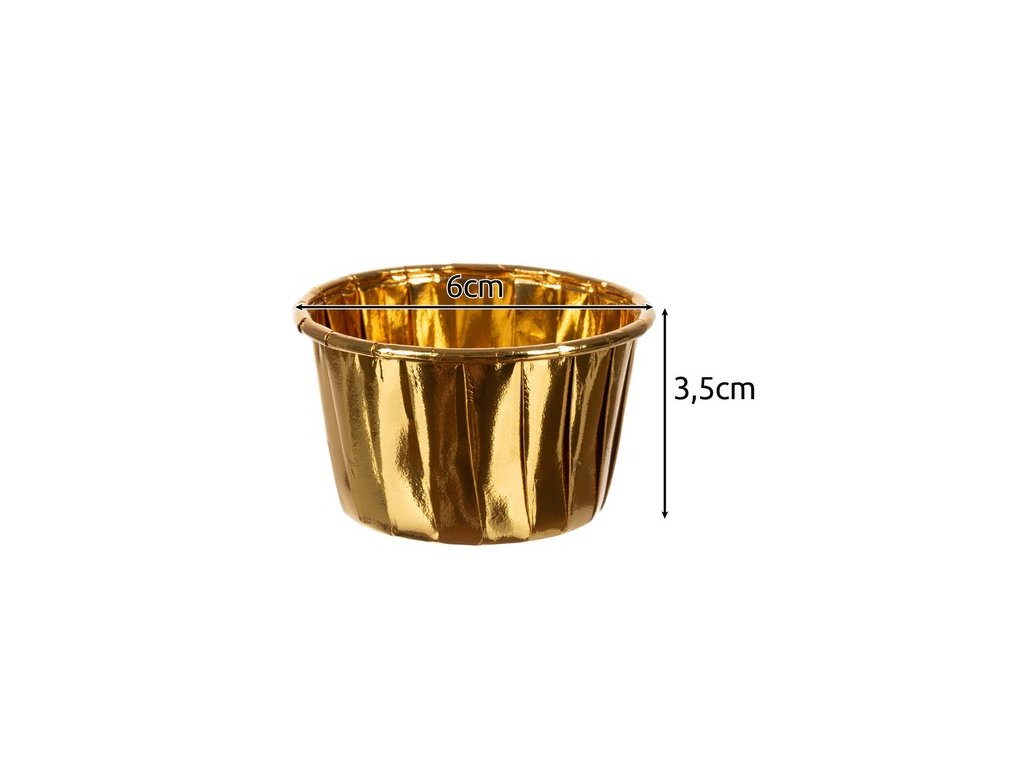 - SPECIFIKACE - barva: zlatá; materiál: papír pokrytý kompozitní hliníkovou fólií; možnost rozložení: ano; možnost pečení bez pečení: ano; odolný proti tukům: ano; jednorázové: ano; rozměry: 3,5 x 6 cm; hmotnost: 0,080 kg; hmotnost balení: 0,081 kg.