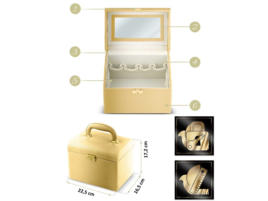 Tento organizér je nejen stylový, ale také velmi funkční. Můžete se spolehnout na jeho robustní konstrukci, která zajišťuje vysokou pevnost a odolnost proti oděru. Zásluhou pečlivého zpracování je každý detail přísně promyšlený, a tak je přímo dokonalým doplňkem pro každou dámu, která si zakládá na kvalitě a stylu. Připravte se na to, že tento organizér se stane nejen místem pro ukládání, ale i klenotem vaší sbírky kosmetických výrobků.