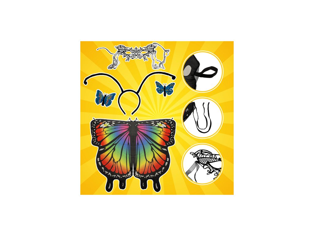 - kompletní sada – křídla, maska na oči, čelenka s tykadly a sponky do vlasů, nic nemusíte sestavovat – stačí vyndat z obalu a outfit je připravený na hraní nebo na ples