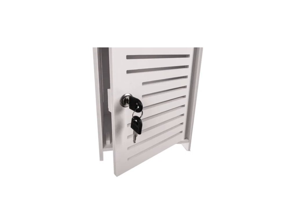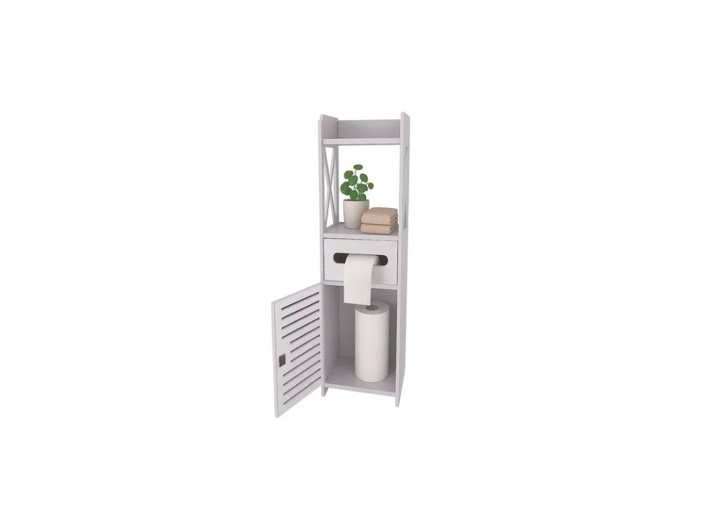 Stojací koupelnová skříňka v bílé barvě je praktický sloup s prolamovanými dvířky a držákem na toaletní papír. Je ideální pro uložení kosmetiky a čisticích prostředků. Je vybavena klíčovým zámkem, který zajišťuje bezpečnost a chrání obsah před přístupem dětí. Estetický design a kompaktní tvar z ní činí perfektní volbu pro každou koupelnu - moderní i klasické.