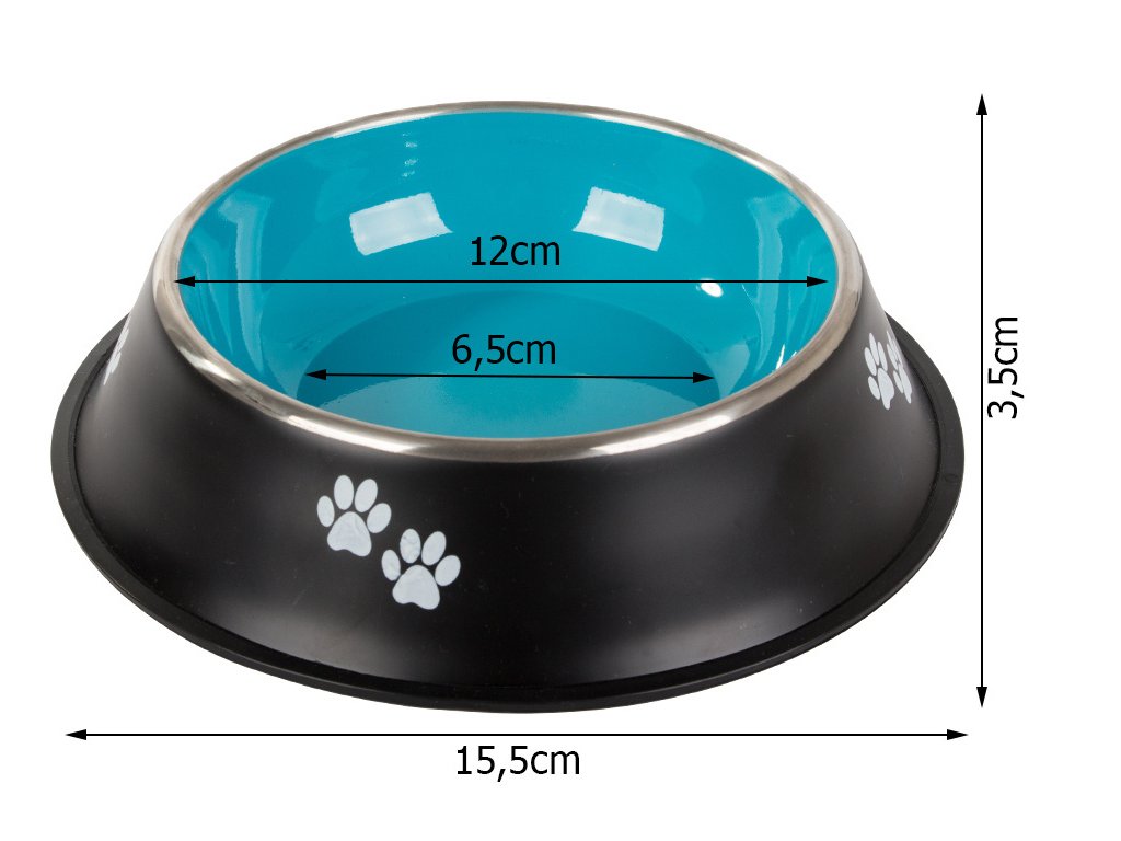 Je vyrobena z nerezové oceli a má protiskluzovou gumu, která zabraňuje klouzání misky na krmivo.