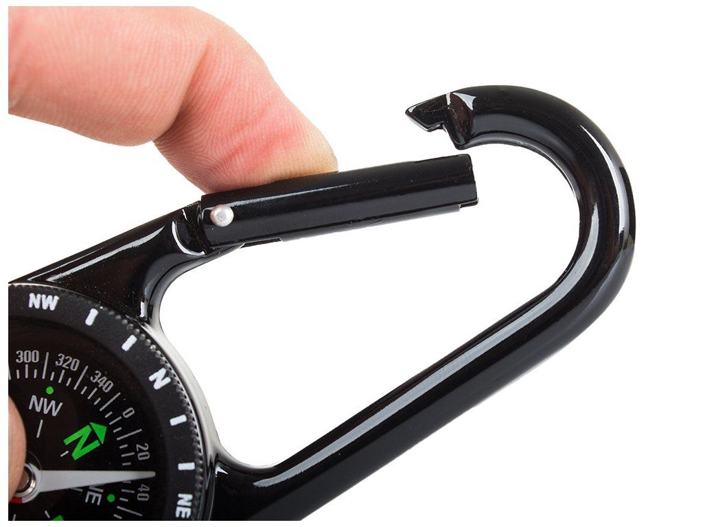 Kompas je také vybaven praktickou karabinou, která umožňuje připevnit kompas na batoh nebo oděv. Senzační pomůcka pro ty, kteří mají rádi vojenský styl.