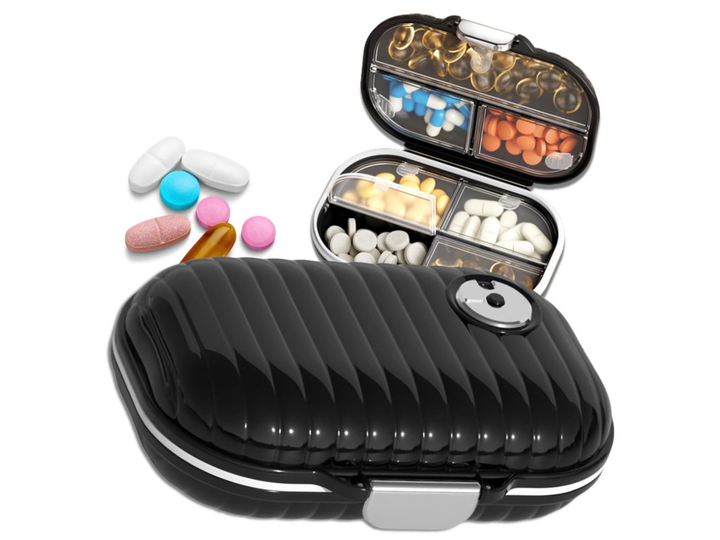 Ztratili jste se ve spleti léků a doplňků a hledáte stylové řešení, jak vnést do své každodenní rutiny řád a eleganci? Zapomeňte na nepraktické krabičky a starosti s dávkováním! S tímto organizérem na pilulky ve tvaru elegantního miniaturního kufru v klasické černé barvě se z organizace léků stane radost. Nyní můžete mít své pilulky, vitamíny a doplňky stravy dokonale uspořádané, ať už jste doma, v práci nebo na cestách.