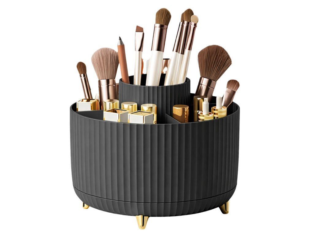 Uspořádejte svou kosmetickou sbírku s elegancí a přehledem díky tomuto stylovému černému organizéru. Tento praktický pomocník v moderním minimalistickém stylu je navržen tak, aby se stal nepostradatelnou součástí vašeho toaletního stolku, koupelny nebo pracovního stolu. Otevřený design zajišťuje okamžitý přístup k vašim oblíbeným štětcům, rtěnkám či řasenkám, zatímco jeho kompaktní rozměry šetří drahocenné místo.