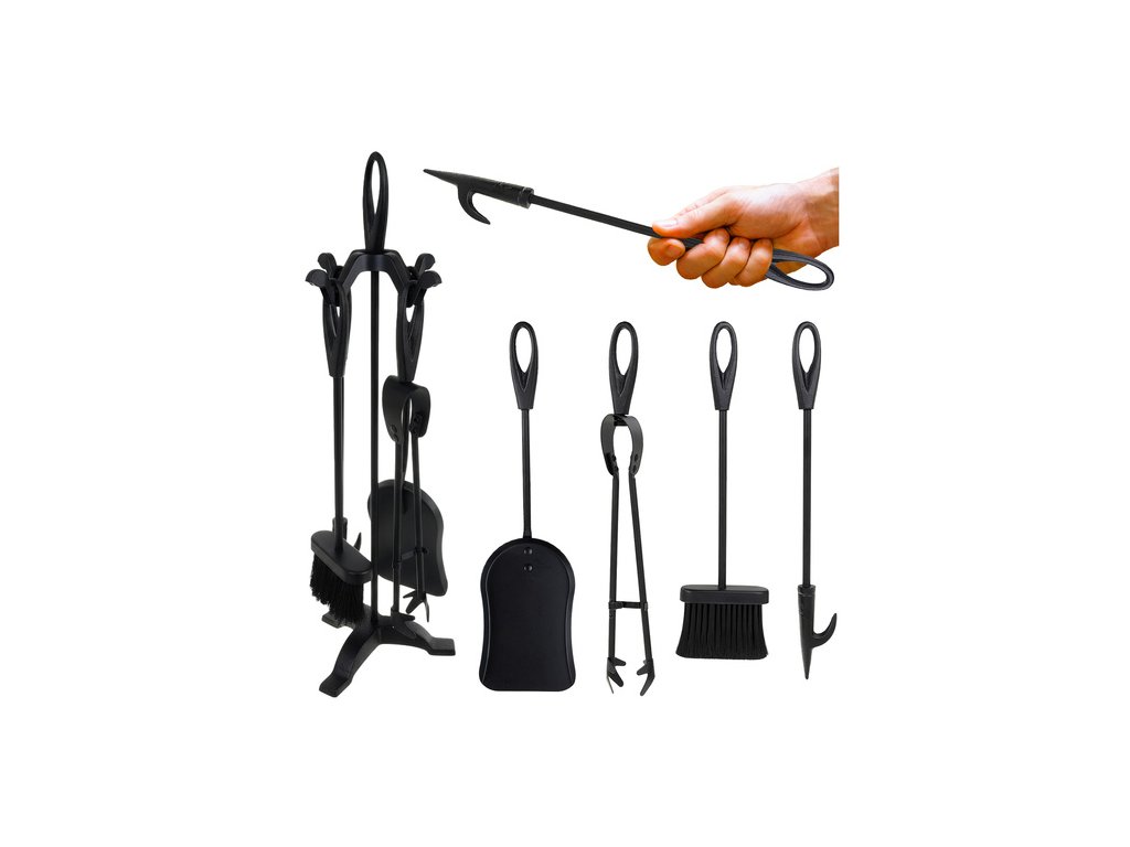 nástroje dobře padnou do ruky a jsou pohodlné na používání - veškeré nářadí - pohrabáč, lopatka a kartáč, délka 42 cm – mají kovové, kulaté rukojeti, které dobře padnou do ruky a poskytují bezpečný úchop při práci s horkým ohněm