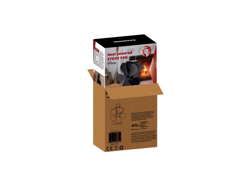 funguje od 60 °C – okamžitý start po zapálení - nemusíte čekat, až se krb rozehřeje na vysokou teplotu, ventilátor se automaticky spustí při 60 °C, což zajišťuje rychlé rozložení tepla