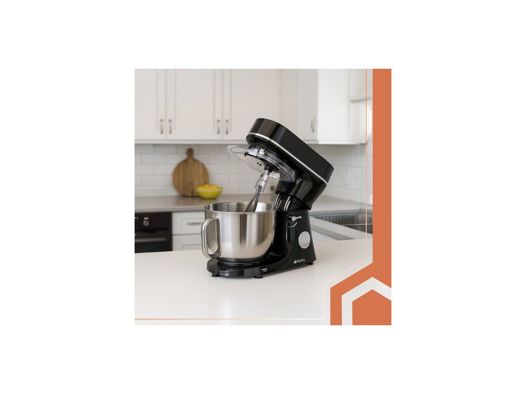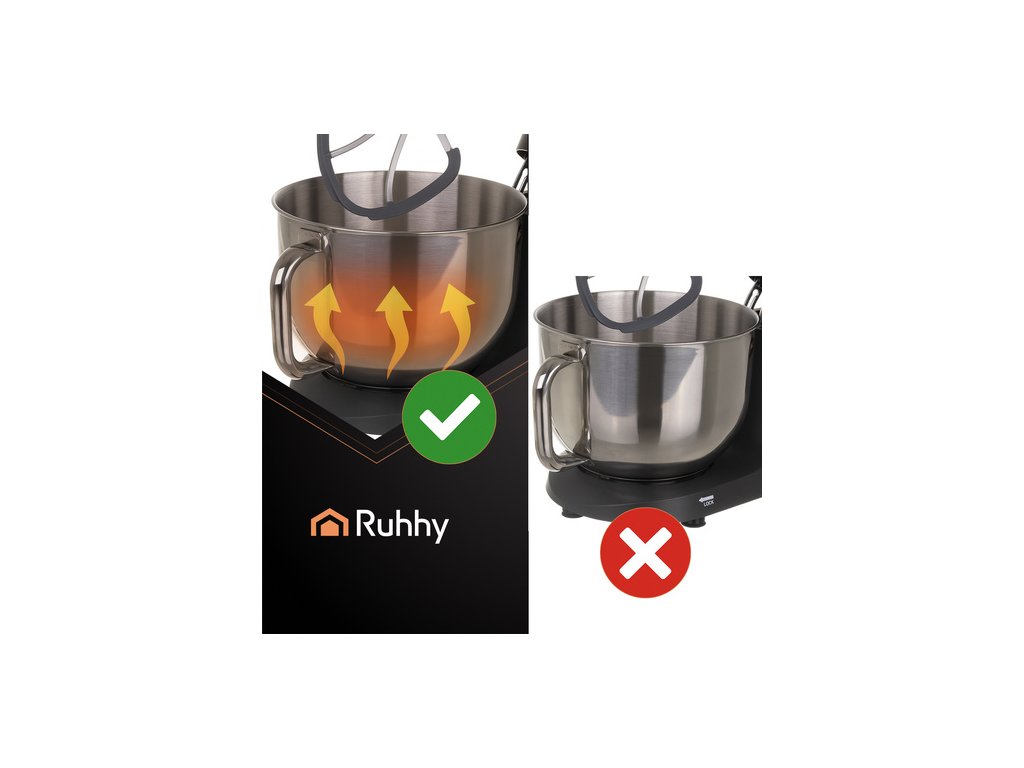 Moderní a multifunkční robot RUHHY s velkou vyhřívanou mísou o objemu 6,2 l usnadňuje hnětení těsta, šlehání krémů a přípravu hmot – bez námahy a nepořádku. Díky 11 rychlostním stupňům, dotykovému displeji a třem dodávaným nástavcům se přizpůsobí jakémukoli receptu. Stabilní, pevný a snadno použitelný – ideální do kuchyně, kde si rádi doma pečete.