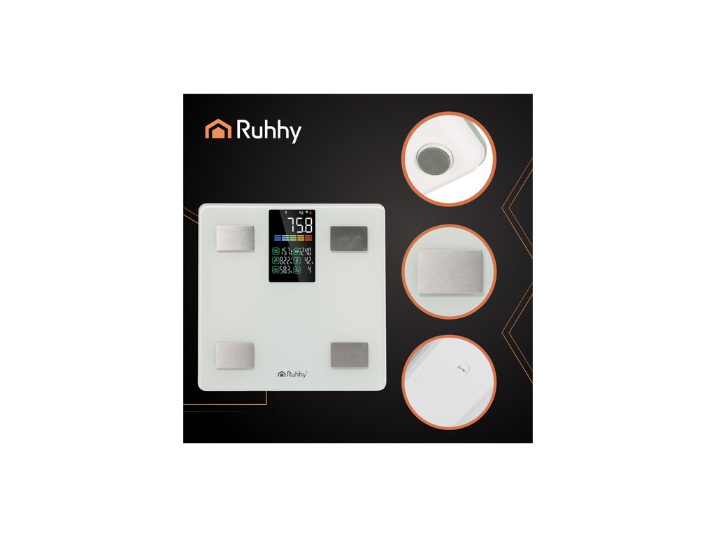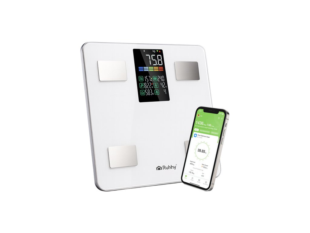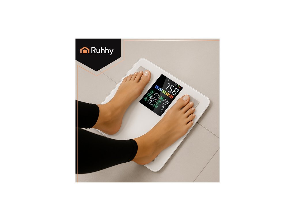 - pokročilá analýza složení těla – zařízení nejen měří tělesnou hmotnost (0,2–226 kg), ale díky technologii BIA analyzuje také BMI, procento tělesného tuku, obsah vody v těle, svalovou hmotu, kostní hmotu, viscerální tuk a další zdravotní parametry