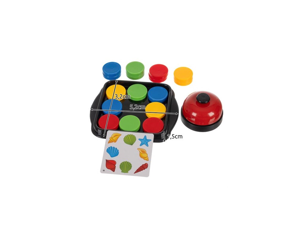 - SIGNALIZACE KONCE POHYBU - jeden z nejvíce vzrušujících prvků hry zvonek, který vydává příjemný zvuk, když jeden hráč dokončí vzor . To je vše zvonek je klíčovým prvkem signalizujícím konec kola a způsobuje, že emoce rostou s každou sekundou hry. Zvonek přidává prvek soutěžení a zvyšuje dynamiku hry . Hra končí když jeden hráč úspěšně dokončí vzor a jako první stiskne zvonek , což umožňuje rychlý obrat vyřešení kola a přechod na další výzvu . Díky tomu hra zaujme, motivuje a přiměje děti ke každé hře přistupovat s nadšením.
