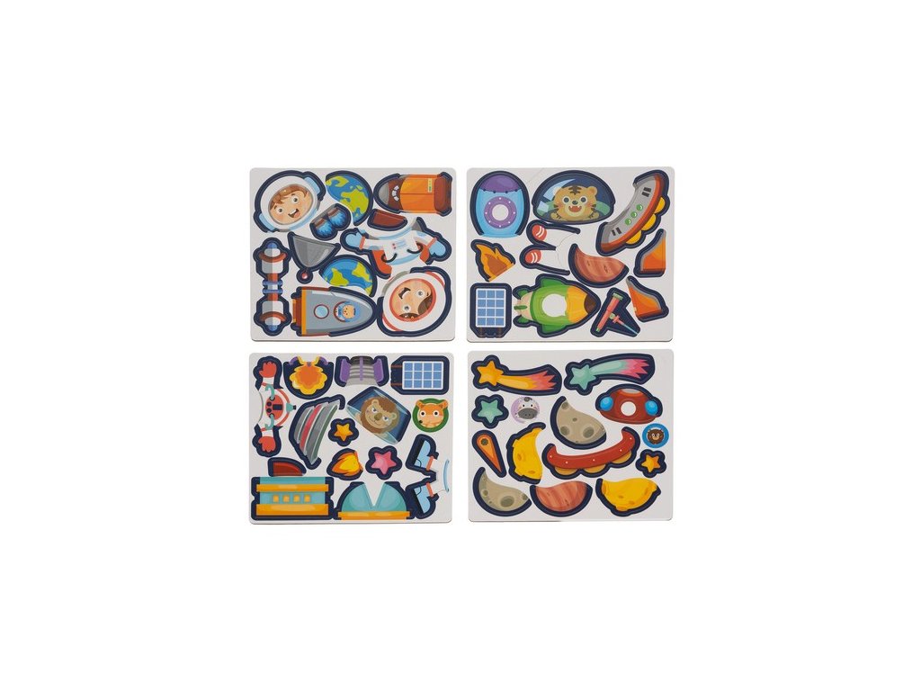 - SADA 50 BAREVNÝCH HÁDANEK S MAGNETY - puzzle je dodáváno s až 50 různými magnety, vyrobenými z natíraného papíru a silným magnetem , který zaručuje trvanlivost a pohodlí při používání . Každý magnet představuje prvky související s vesmírem, jako jsou části vesmírných lodí, astronauti, planety a hvězdy . Magnety lze libovolně kombinovat a vytvářet tak originální kompozice popř kopírováním obrázků z karet . Po skončení zábavy, všechny magnety a karty lze pohodlně schovat do krabičky , což usnadňuje skladování a udržování pořádku.