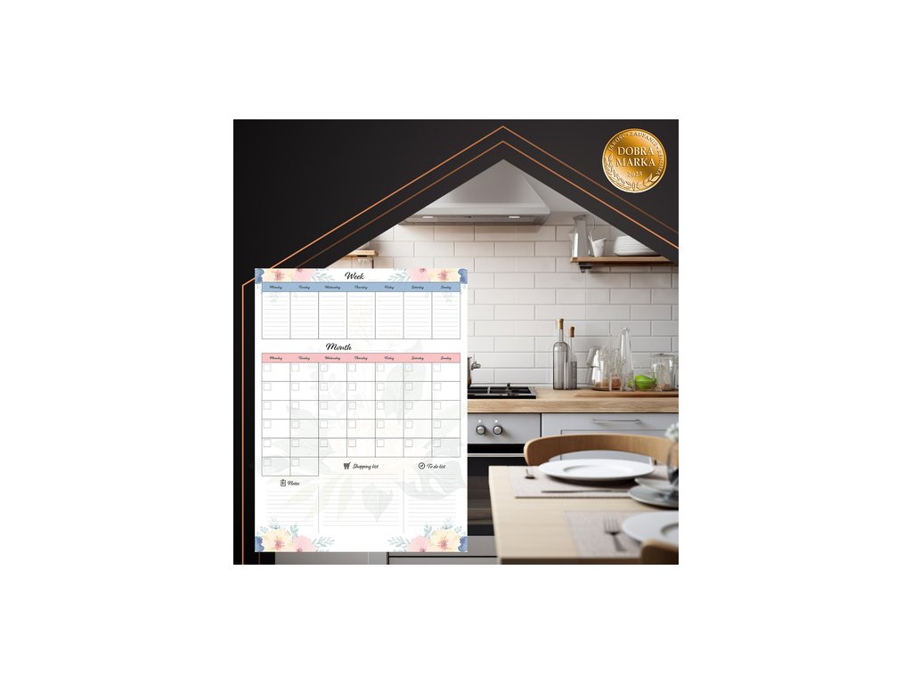 - velký , mazatelný diář - plocha 60 x 45 cm vám poskytne dostatek místa na plány, poznámky a úkoly, díky funkci suchého mazání můžete poznámky snadno měnit - už žádný chaos a mazání