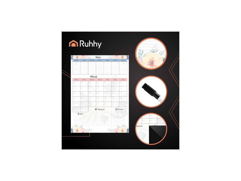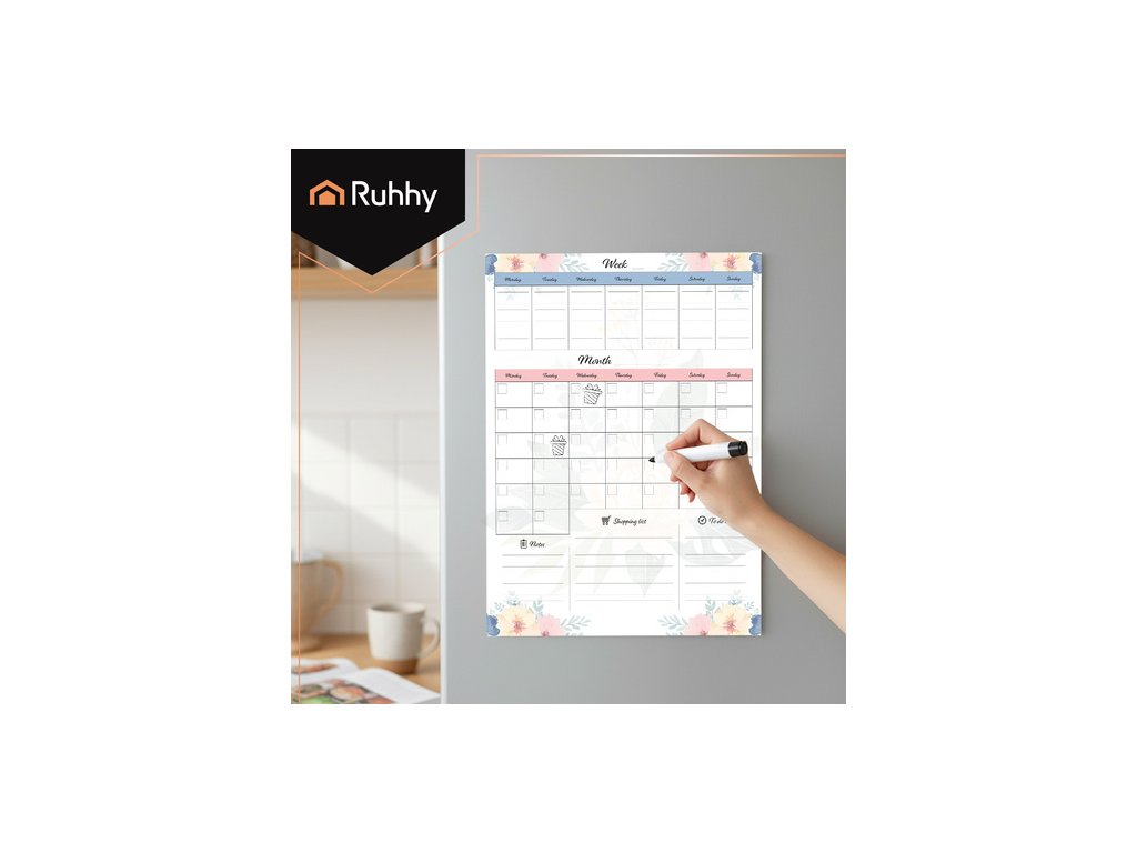 Magnetický plánovač RUHHY je praktický nástroj, který vám pomůže uspořádat si každodenní práce, nakupování a důležité události na jednom místě . Velký, stíratelný, magnetický povrch Umožňuje vám snadno psát a mazat poznámky a další sekce pro nákupní seznamy a seznamy úkolů zajišťují úplnou kontrolu nad vaším denním programem . Není to jen funkční organizér, ale také stylový doplněk vašeho interiéru, což z něj dělá skvělý dárek.