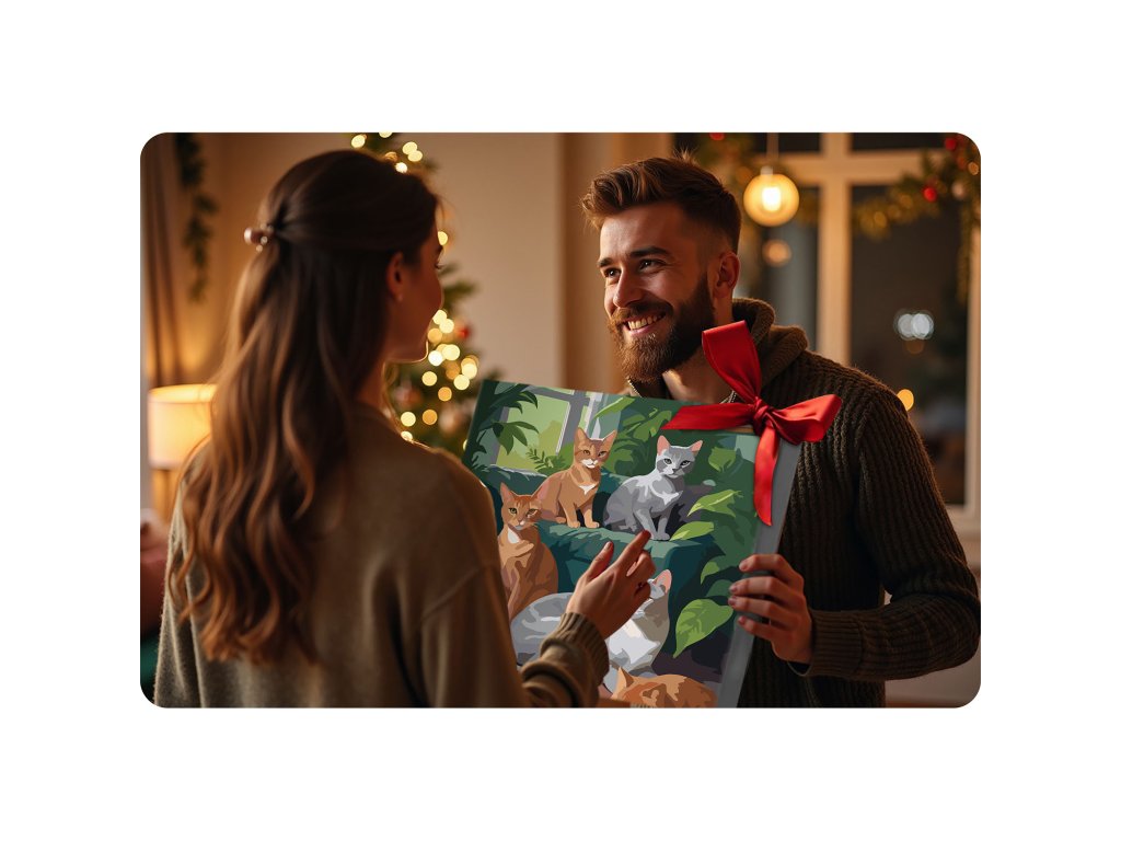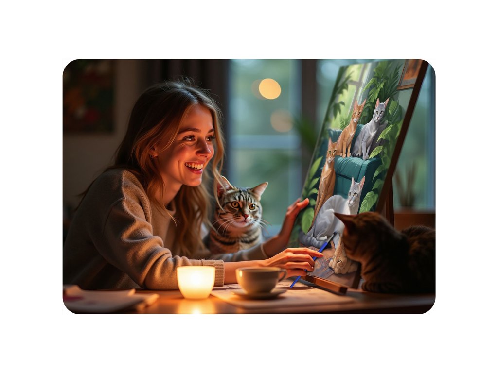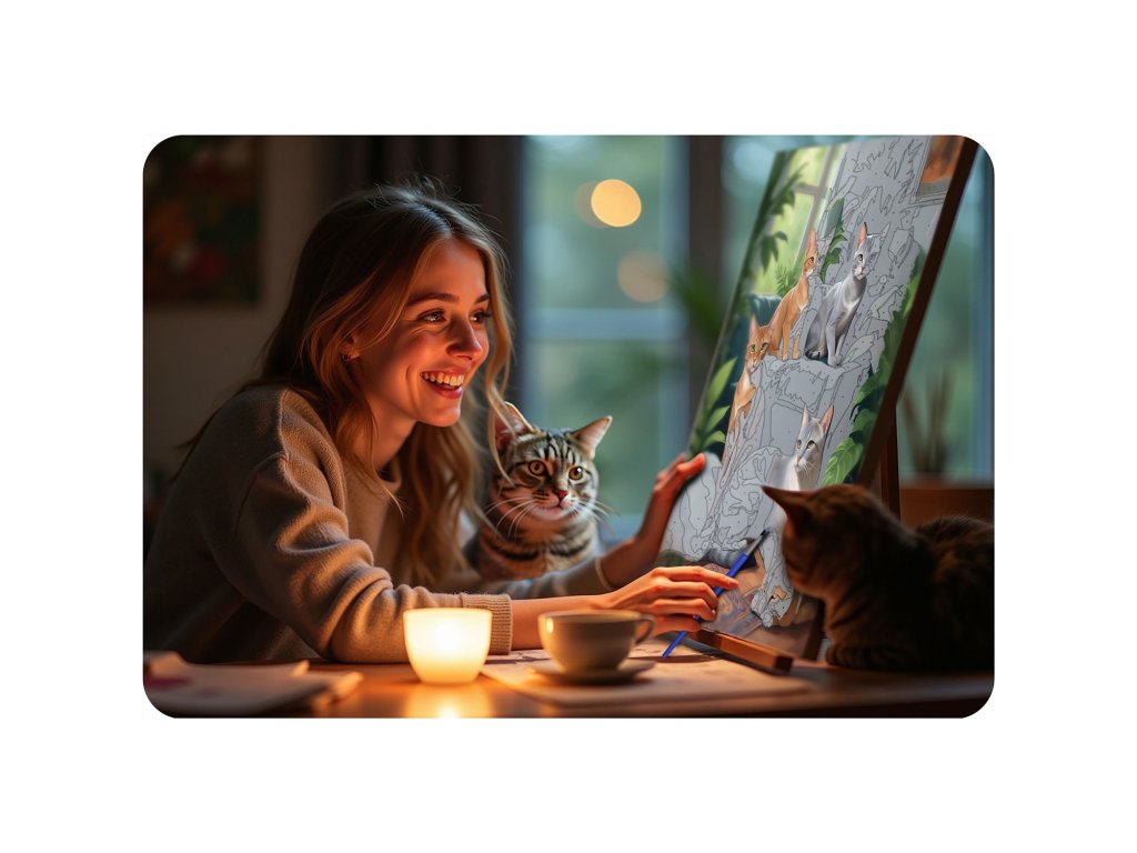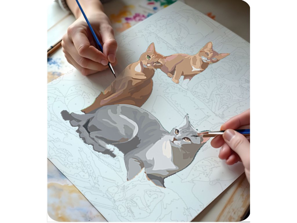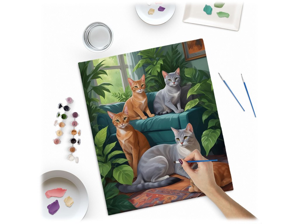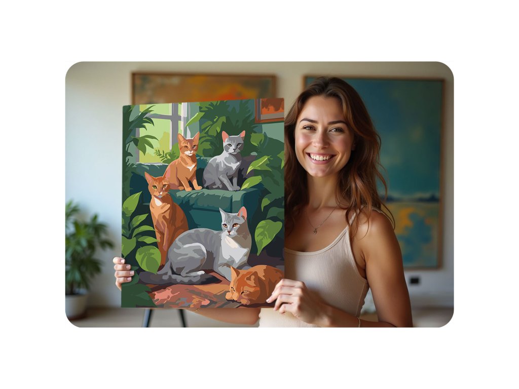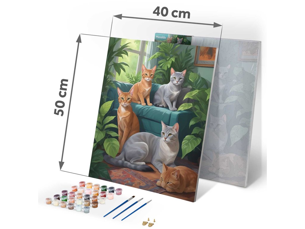 Sada na malování Kočky o rozměrech 40 x 50 cm vás vnese do světa barev a kreativity, kde si vytvoříte jedinečné umělecké dílo, i když nejste zkušení malíři. Kvalitní plátno na napínacím rámu je připraveno na vaši tvůrčí jízdu a díky barevné podmalbě s jemným vzorem se do malování snadno pustíte. Tato sada nabízí až 30 intenzivních krycích barev, které dodají vašim výtvorům nádherný vzhled.