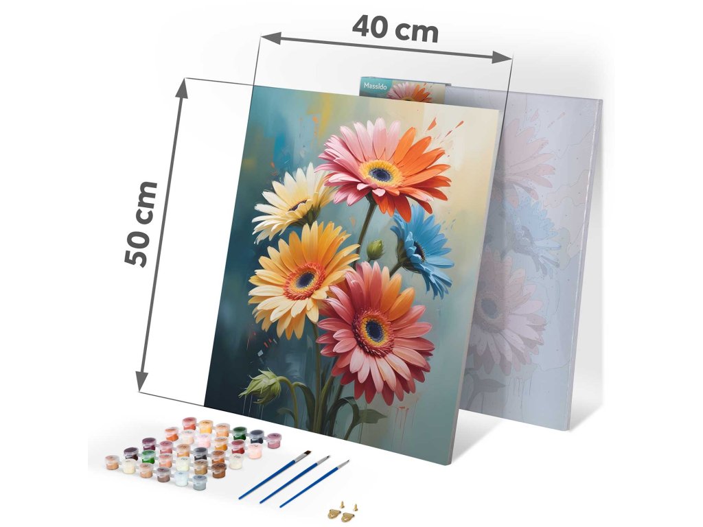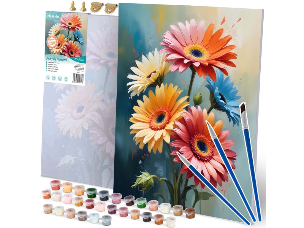 Vysoce kvalitní plátno na napínacím rámu je nejen odolné, ale také připravené k malování. Barevná podmalba s jemným vzorem usnadňuje práci i těm, kteří se s malováním teprve seznamují. Díky sadě až 30 intenzivních krycích barev můžete vychutnat skvělý efekt, který váš výtvor promění na jedinečnou dekoraci interiéru. Součástí balení jsou tři štětce různých velikostí, které vám pomohou s precizními detaily, a závěsná sada na obraz, abyste mohli okamžitě vystavit své dílo.