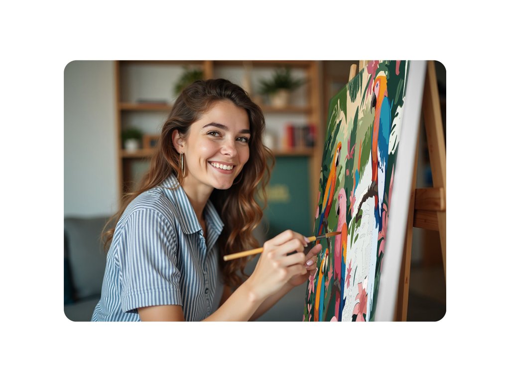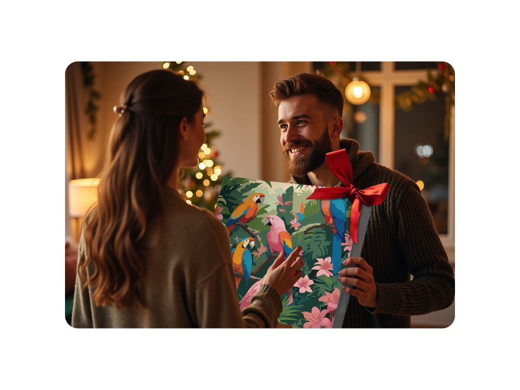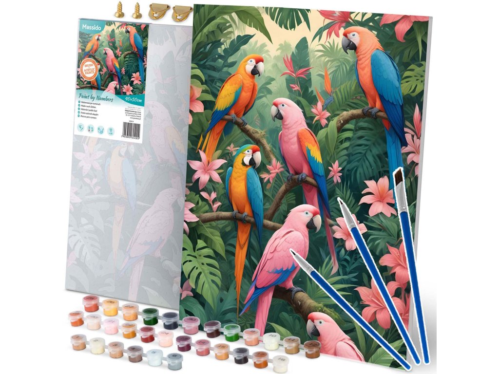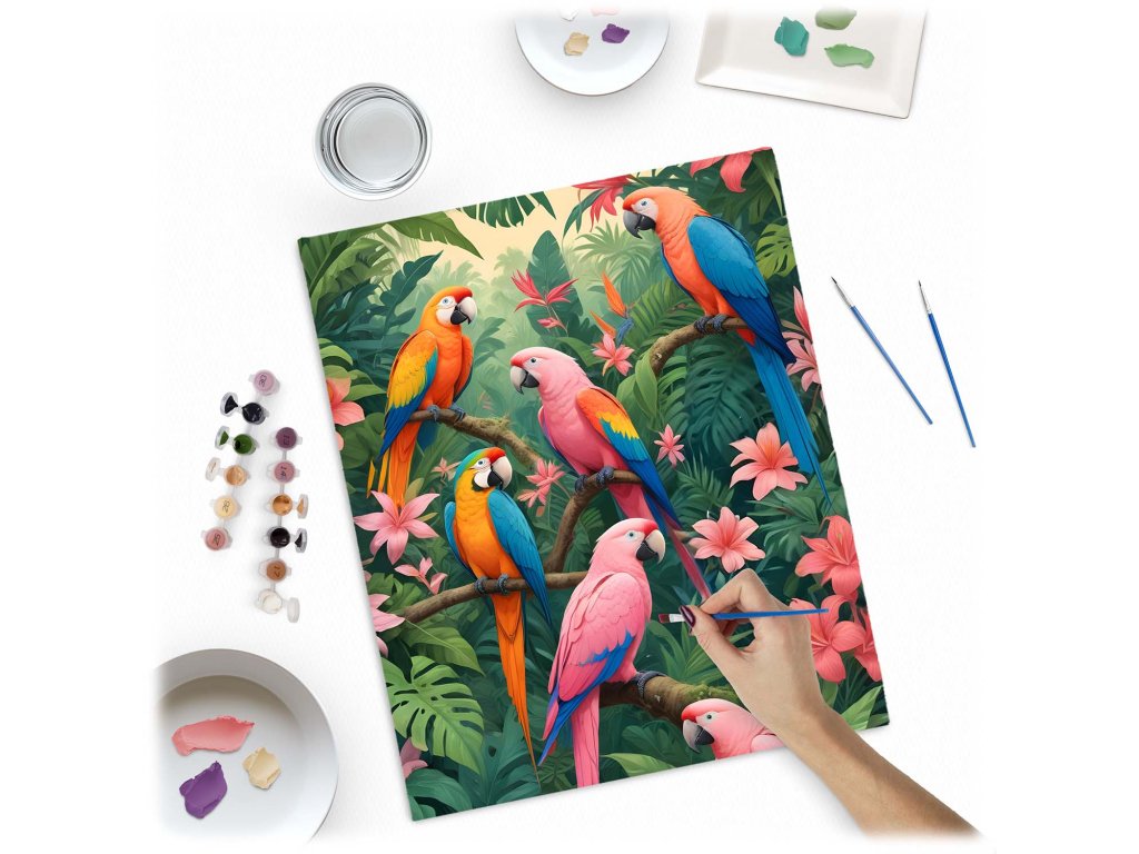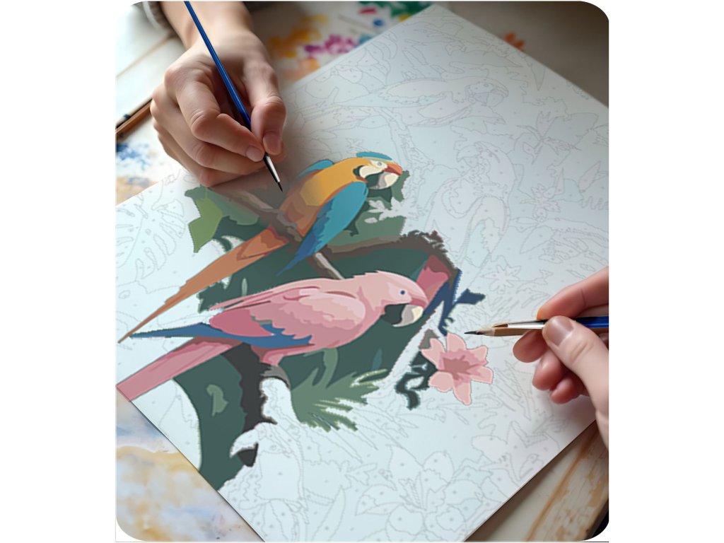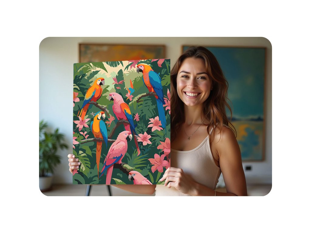 Tento skvělý produkt je ideální volbou pro všechny umělce a milovníky kreativity, kteří hledají nový způsob, jak vyjádřit své emoce. S veselým vzorem papoušků a živými barvami se každý okamžik promění v nezapomenutelný zážitek. Nezáleží na tom, zda jste začátečník, nebo zkušený malíř – s naší sadou zvládnete krásné mistrovské dílo krok za krokem.
