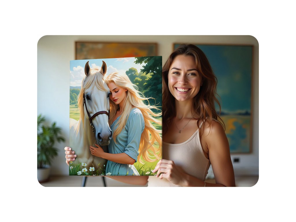 které vás zve na fascinující cestu kreativního vyjádření. S naším designem portrétu ženy s koněm se zasníte nad každým detailem a barevnými tóny, které oživí vaše plátno. Nezáleží na tom, zda jste zkušený umělec nebo úplný začátečník, naše malování podle čísel vám umožní snadno vytvořit krásné dílo, z kterého budete mít radost. Tato sada je skvělým způsobem, jak strávit nezapomenutelné chvíle s rodinou a přáteli – spojte se skrze tvořivost a sdílejte radost!