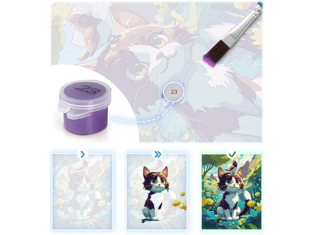 Toužíte po relaxaci a jedinečné dekoraci pro váš domov? Představte si, jak se ponoříte do světa barev a postupně oživujete rozkošné kotě, aniž byste potřebovali jakékoliv umělecké zkušenosti! Malování podle čísel je ideální aktivita pro dlouhé večery, která skvěle uvolní mysl a přinese hmatatelné výsledky. S naší sadou pro malování podle čísel s motivem kotěte získáte nejen kreativní zábavu pro sebe nebo celou rodinu, ale také úžasné, ručně malované umělecké dílo, které dodá vašemu interiéru osobitý šarm. Nechte obyčejné koníčky stranou a sáhněte po prémiové kvalitě od značky Massido. Přeměňte volný čas na barevné dobrodružství a vytvořte mistrovské dílo, které vám bude každý závidět! Sada obsahuje vše, co potřebujete: vysoce kvalitní plátno na rámu s předtištěným vzorem, sadu barev s až 30 neprůhlednými barvami a tři štětce. Hotový obraz má rozměry 40x50 cm a je připraven k zavěšení díky přiložené sadě háčků. Je to perfektní dárek, který přinese radost z tvoření.