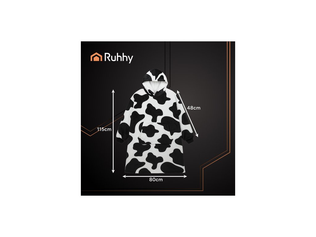 Mikina RUHHY oversized je mimořádně dlouhá, velká a silná mikina s kapucí – kombinace pohodlné deky a útulné mikiny s kapucí. Tato kožešinová mikina velikosti XXL poskytuje volnost pohybu, teplo a ochranu před chladem. Černobílý zvířecí potisk dodává mikině moderní a módní vzhled, díky čemuž je ideální pro muže i ženy, a to jak doma, tak i venku.