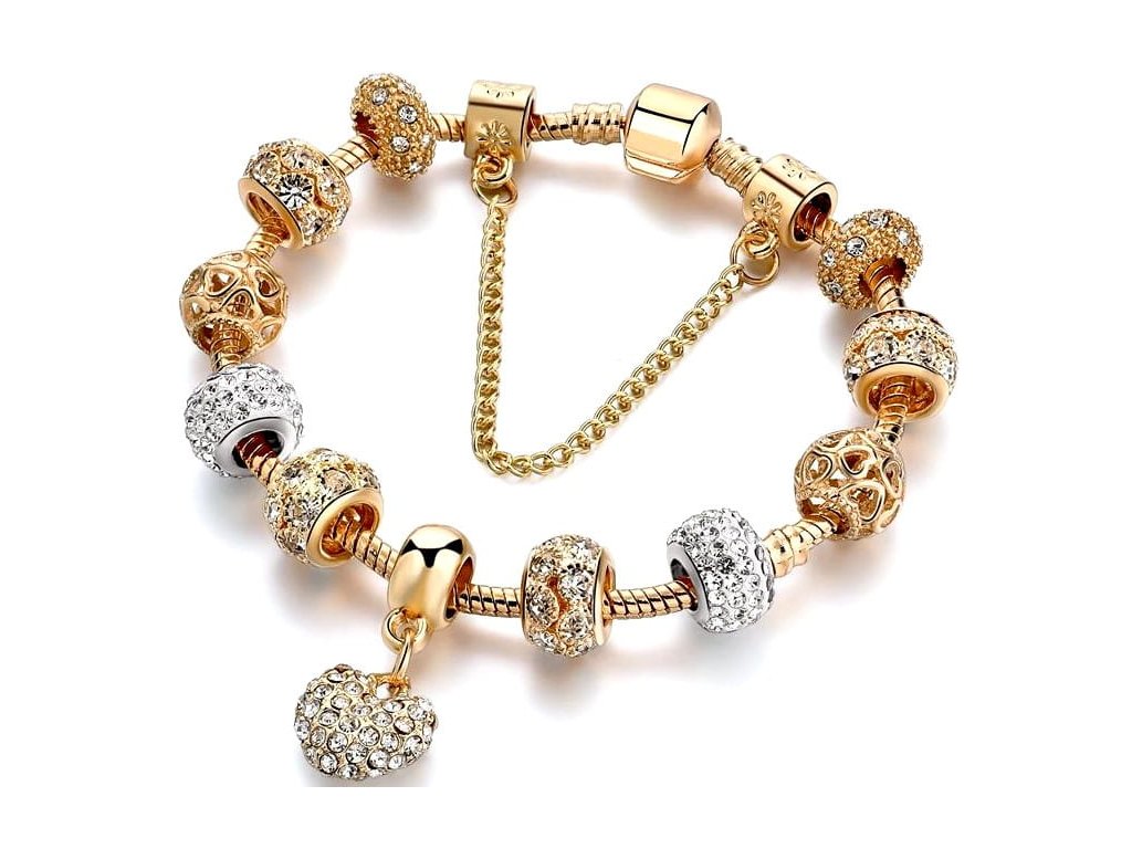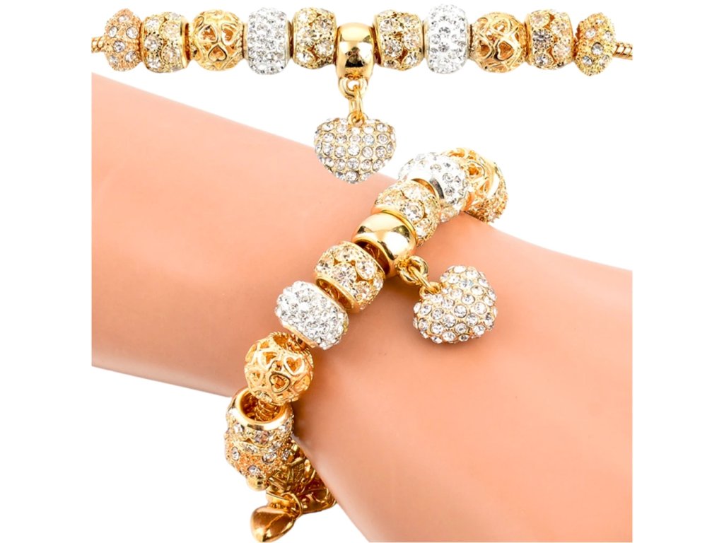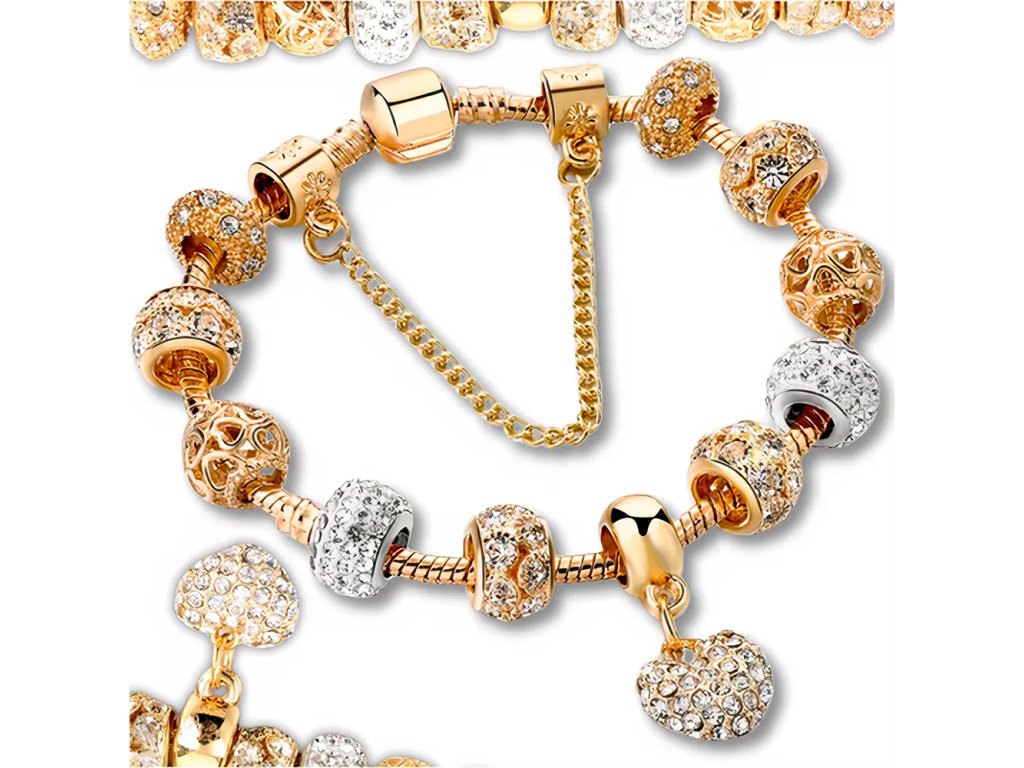 Modulární přívěsky náramek zlaté srdce zlaté je skvělým dárkem pro sebe nebo pro vaše blízké. Je to šperk, který dodá každému outfitu eleganci a sofistikovanost.
