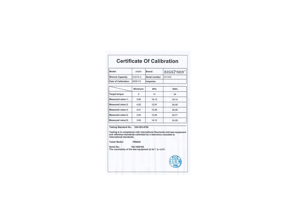 každý klíč má individuální kalibrační certifikát a sériové číslo - kalibrovaný a testovaný momentový klíč pracuje přesně, můžete si být jisti, že šrouby utáhne nastavenou silou