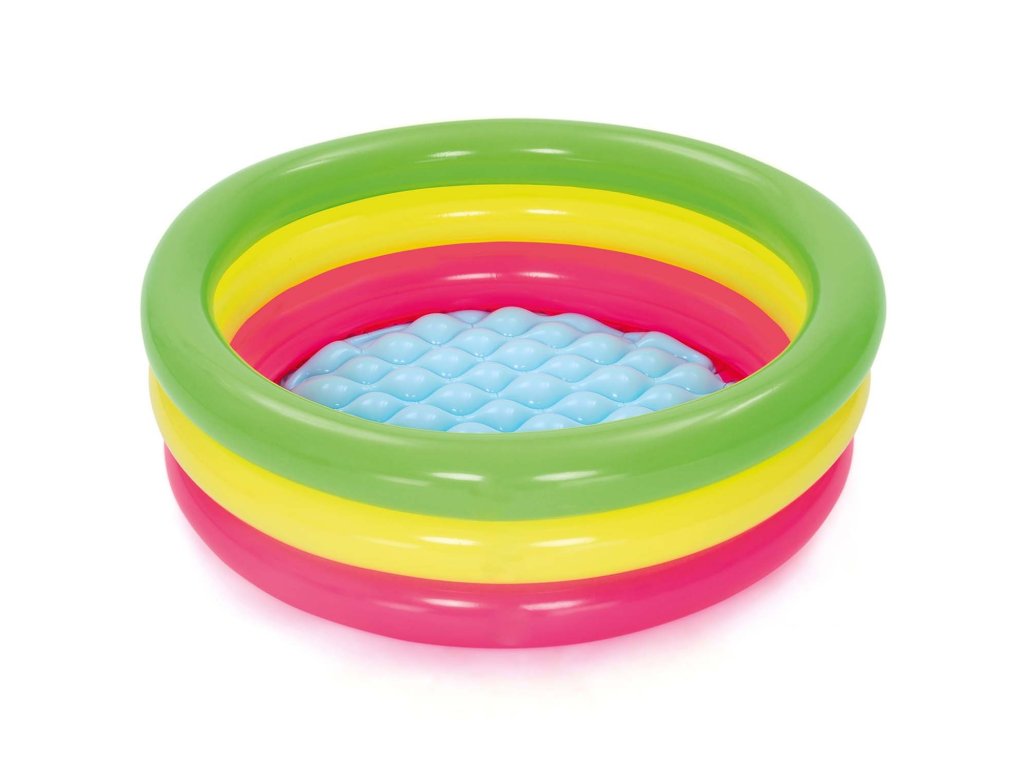 Barevné stěny bazénu vyrobené ze tří vibrantly nafukovacích kruhů přinášejí do každého dne radost a barvy. Měkké nafukovací stěny a základna garantují bezpečné a pohodlné hraní pro ty nejmenší. Tento bazén je navržen tak, aby splňoval očekávání rodičů i dětí, takže si můžete být jisti, že vaše děti budou mít v létě nezapomenutelné chvíle.