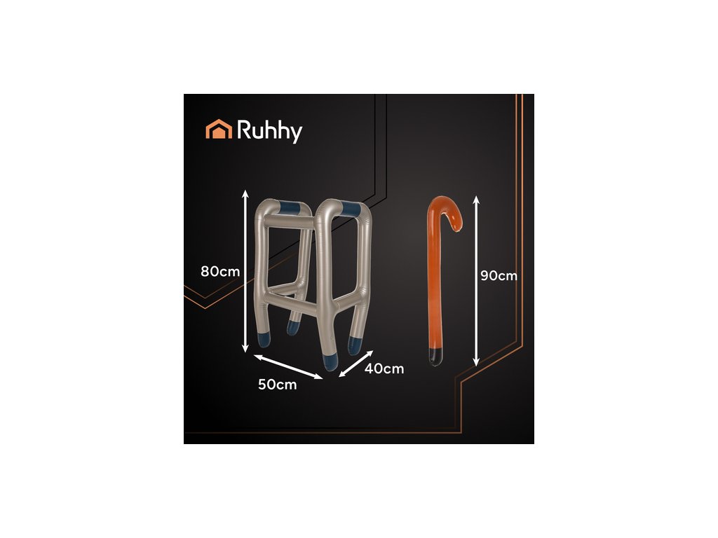 Poutavá vychytávka v podobě klasického chodítka s připevněnou holí, která dokonale napodobuje vzhled pomůcek pro seniory – ve vtipné, nafukovací verzi. Díky dodávanému čerpadlu jej lze připravit během několika okamžiků. Ideální jako zábavný doplněk kostýmu na Halloween, kostýmní večírky, tematické večírky, rozlučky se svobodou nebo divadelní představení. Toto je doplněk, který zaručí úsměv a ozdobí každý styl!