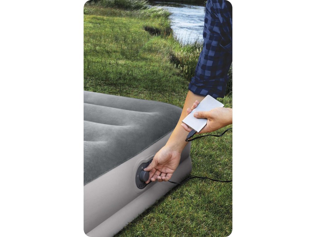 která kombinuje pohodlí, praktickou funkčnost a maximální komfort. Tento luxusní kousek vybavení o rozměrech 203 x 152 x 30 cm se zabudovanou elektrickou pumpou je ideální volbou pro každou situaci, ať už jde o kempování nebo návštěvy přátel. Už žádné zdlouhavé nafukování – stačí stisknout tlačítko a během chvilky máte připravené pohodlné místo na spaní.
