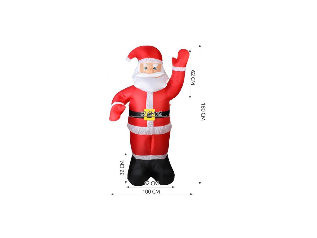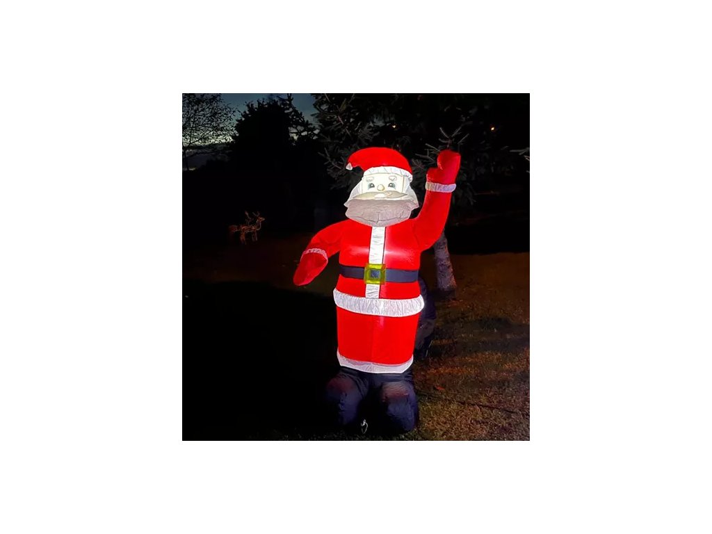 Tento velký nafukovací Santa Claus je bezkonkurenční v šíření vánoční aury a jistě přitáhne pozornost sousedů i náhodných kolemjdoucích. Je vybavena LED diodami , které mu umožní osvětlit Vaši nemovitost během zimních večerů.