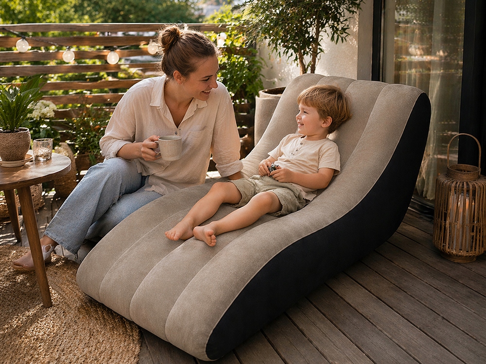 Pohodlná, ergonomická nafukovací matrace ve formě lehátka a křesla je ideálním řešením pro odpočinek doma, na terase, balkóně nebo na výletech. Díky speciálně tvarovanému profilu zajišťuje přirozenou oporu pro záda, krk a nohy, což se promítá do vysokého komfortu při používání i po delší dobu.