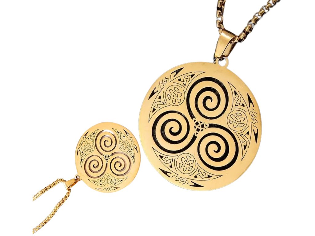 Náhrdelník je vyroben z chirurgické oceli, která je známá svou odolností a dlouhou životností. Povrch náhrdelníku je pokryt vrstvou 24 karátového zlata, což dodává šperku luxusní vzhled. Přívěsek ve tvaru keltské spirály dodává šperku jedinečný a atraktivní vzhled.