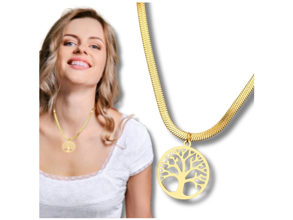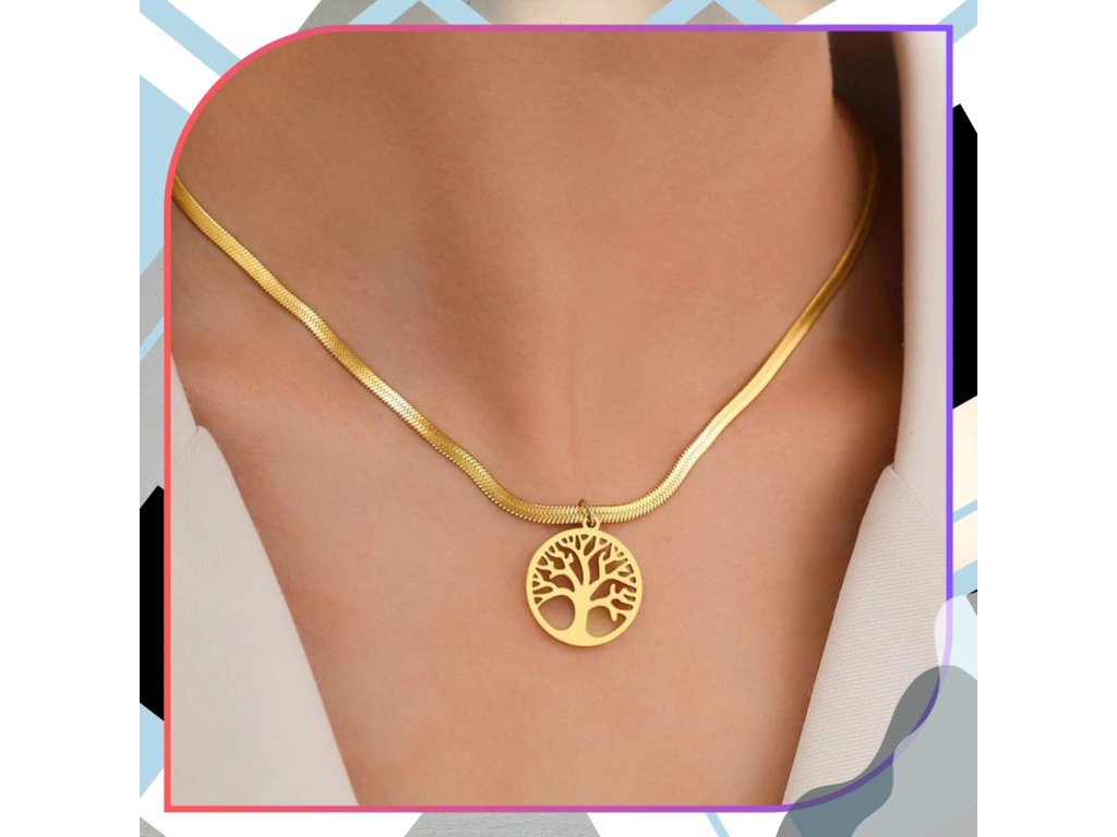 Objednejte si tento náhrdelník ze zlaté zmije a stromu z chirurgické oceli a dopřejte si kousek luxusu každý den.