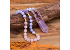 Náhrdelník z pravých přírodních kamenů, jako je malachit, jaspis a křišťál, spojuje eleganci s duchovními vlastnostmi. Jeho délka 85 cm umožňuje variabilní nošení a měděné...