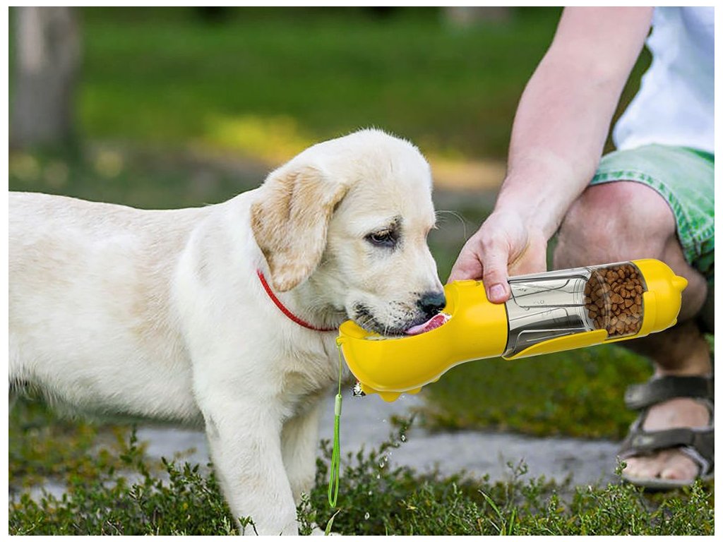 Zásobník ve formě láhve je ideálním řešením na procházky, cesty a každodenní výlety s mazlíčkem. Díky kompaktní konstrukci umožňuje snadné podávání vody i krmiva. Nádoba je vybavena pohodlnou miskou, ze které může pes nebo kočka přímo pít nebo jíst, což eliminuje potřebu nosit další příslušenství.