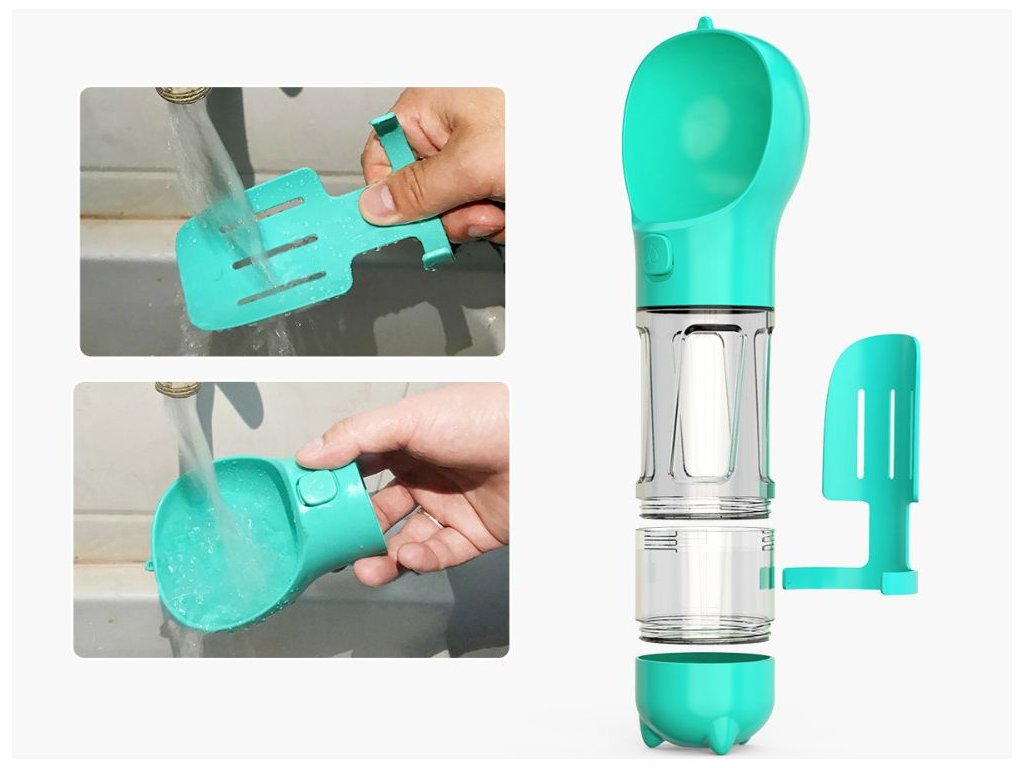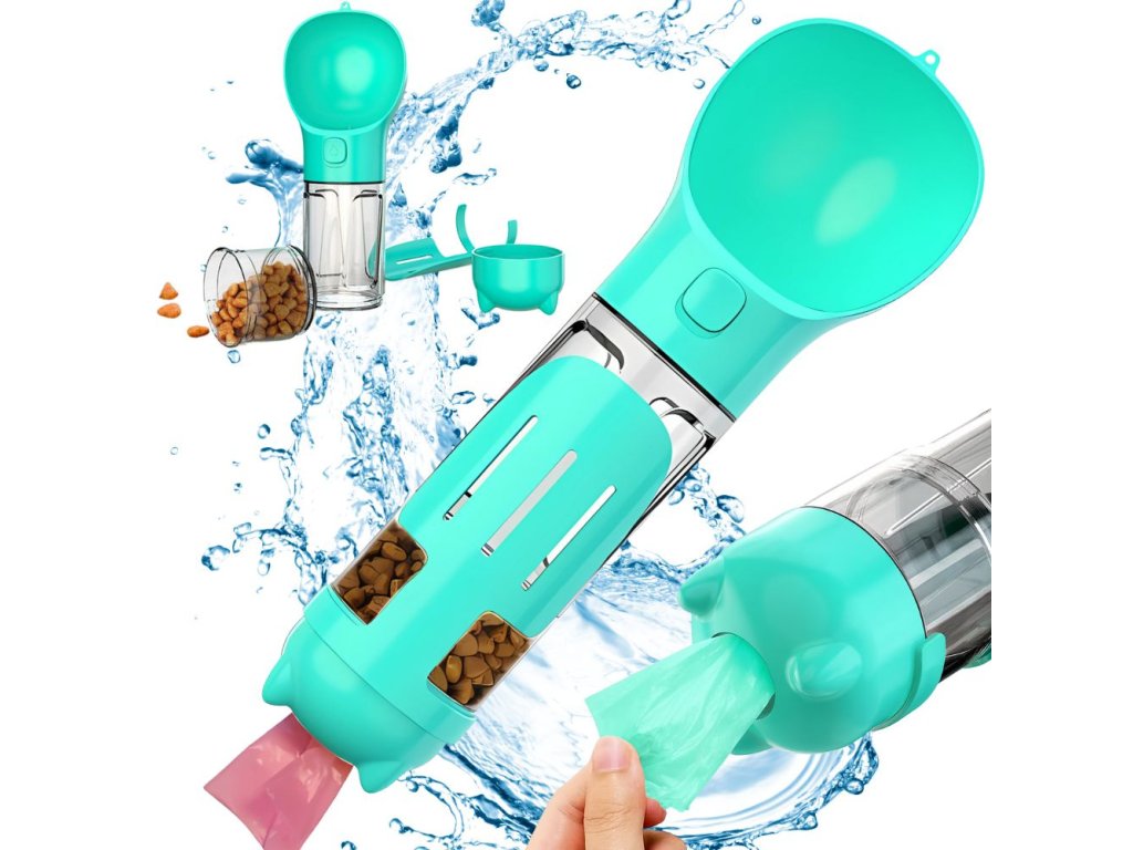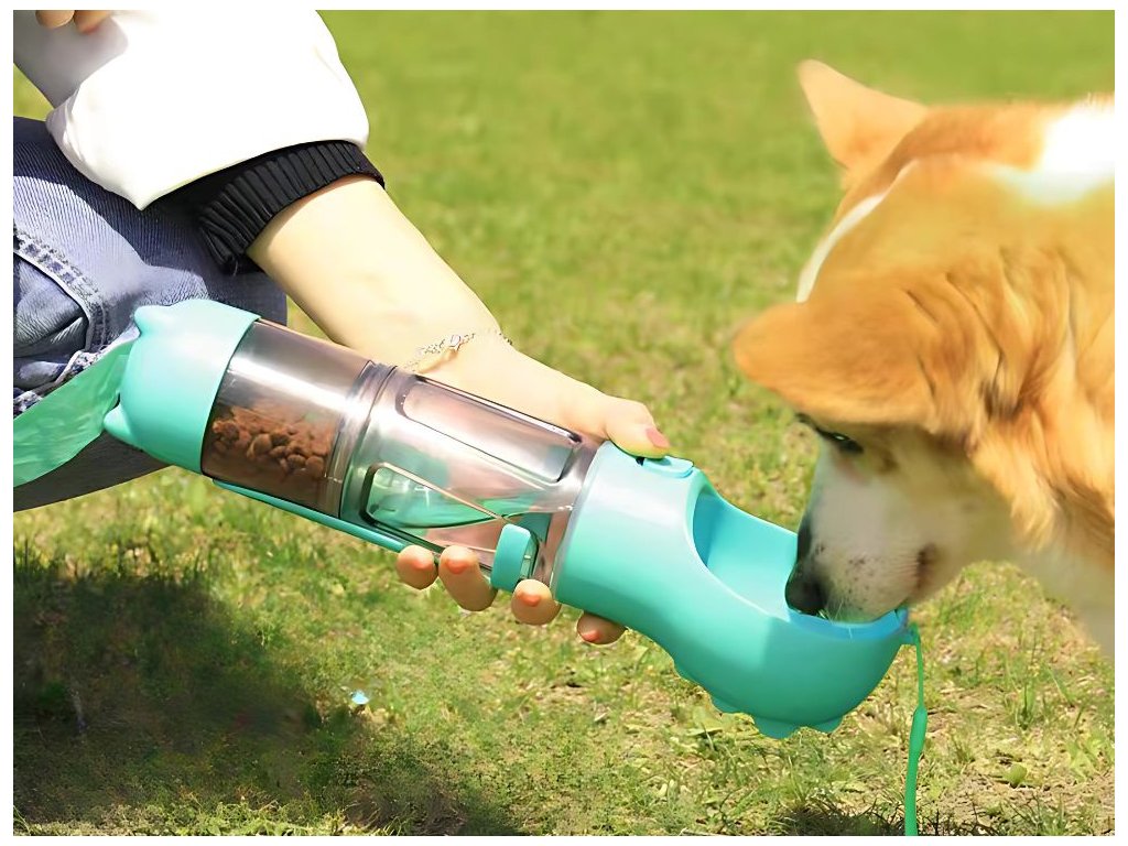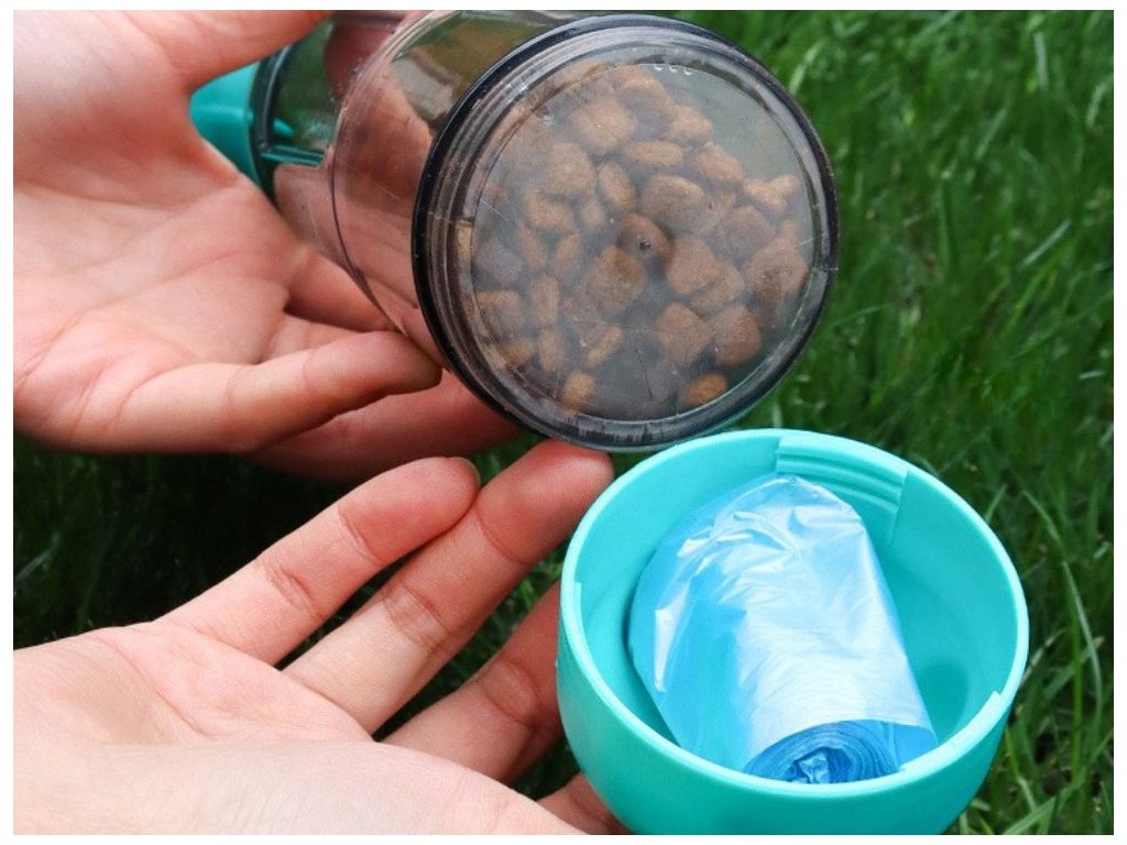Láhev kombinuje funkci podavače vody, krmiva a praktického dávkovače sáčků. Díky tomu máte vždy po ruce nezbytné příslušenství pro péči o svého mazlíčka – napojíte ho, nakrmíte a rychle uklidíte po procházce. Robustní konstrukce a těsné uzavření zajišťují pohodlné používání a bezpečnost při přepravě.