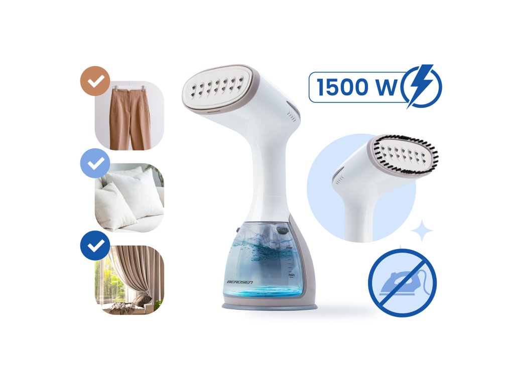 Už vás nebaví zdlouhavé a únavné žehlení s prkny a klasickými žehličkami? Představte si, že si košili vyžehlíte za pouhou minutu, přímo na ramínku, a zároveň ji zbavíte bakterií a roztočů. Náš vysoce účinný a stylový napařovač oděvů Berdsen BD-310 s příkonem 1500 W je revoluce v péči o váš šatník a domácnost. Získejte okamžité výsledky a maximální pohodlí bez kompromisů v kvalitě. Dejte sbohem pomačkanému oblečení a přivítejte svěžest, hygienu a rychlost, kterou si zamilujete!