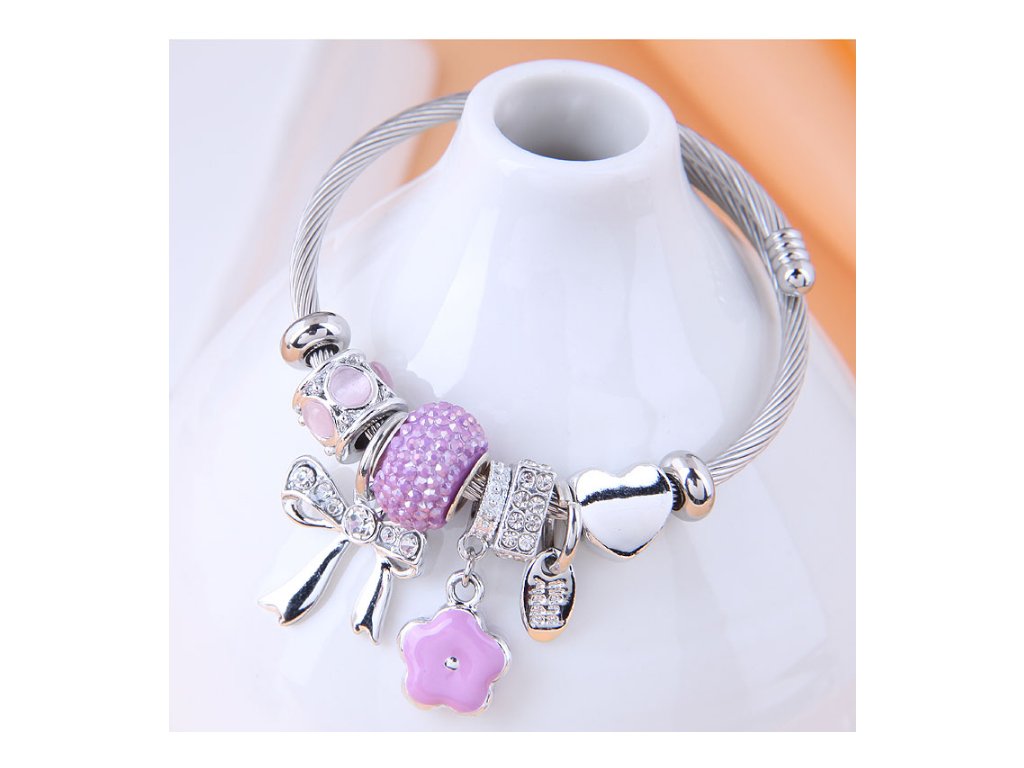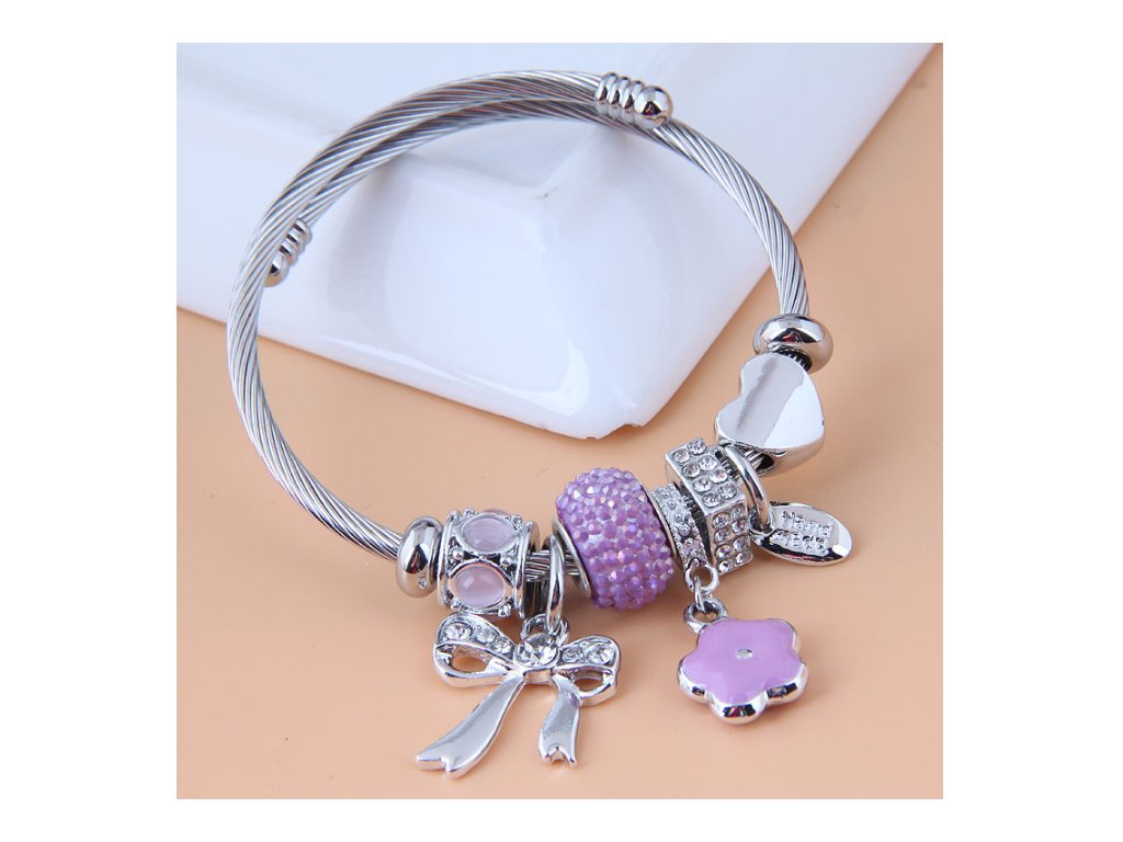 Náramek typu „bangle“ je navržen v moderním stylu Fashion, kterému dominují hravé motivy mašle (bow knot), květiny a srdce. Díky preciznímu zpracování a kombinaci materiálů působí luxusním dojmem, který podtrhne vaši ženskost.