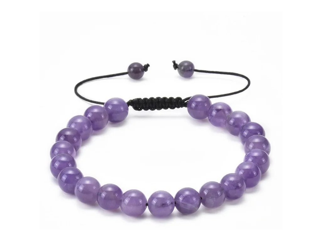 Materiál: Přírodní ametyst, odolná textilní šňůrka.