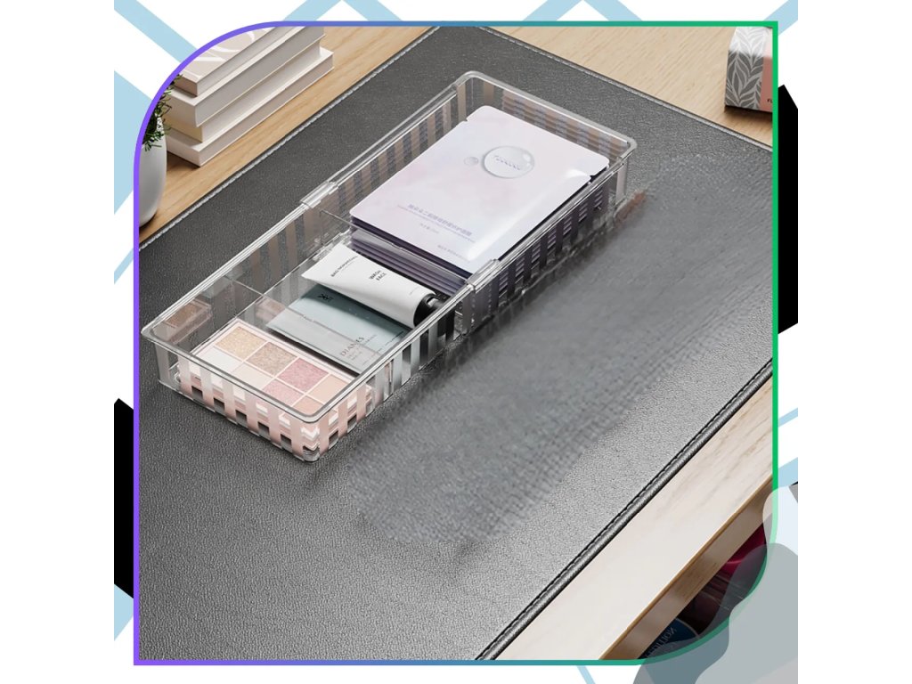 Uspořádejte si svou kosmetickou sbírku s lehkostí a stylem díky tomuto inovativnímu řešení pro váš toaletní stolek nebo koupelnu. Tento praktický kousek je navržen tak, aby se přizpůsobil vašim individuálním potřebám a pomohl vám udržet dokonalý přehled o všech líčidlech, rtěnkách i doplňcích péče o pleť. Průhledné provedení zajišťuje, že okamžitě najdete přesně to, co hledáte, aniž byste museli prohledávat celou zásuvku.