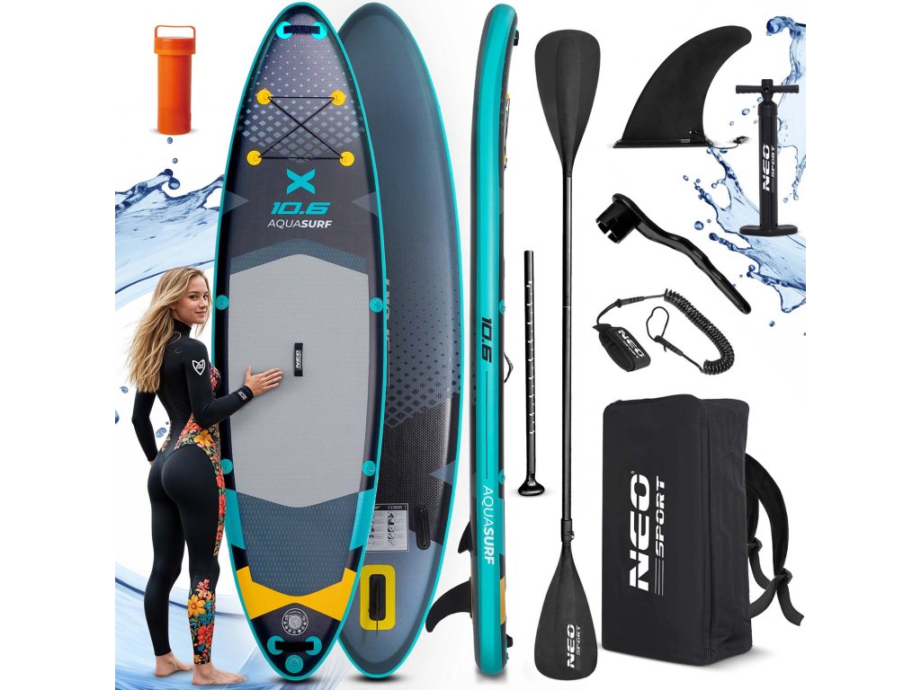 Chcete zažít nezapomenutelné vodní dobrodružství, při kterém dokonale propojíte relaxaci a aktivní pohyb? S SUP prknem Aquasurf 10.6 se ponoříte do světa klidné vody i malých vln s maximální jistotou a stylem. Je to víc než jen prkno – je to váš nový prostor svobody a klíč k aktivní dovolené. Díky komplexní sadě, která obsahuje vše od nastavitelného pádla až po batoh, můžete vyrazit za dobrodružstvím okamžitě po nafouknutí! Zapomeňte na starosti s přepravou a únavné nafukování – s naším oboustranným čerpadlem je příprava rychlá, pohodlná a bezpečná.
