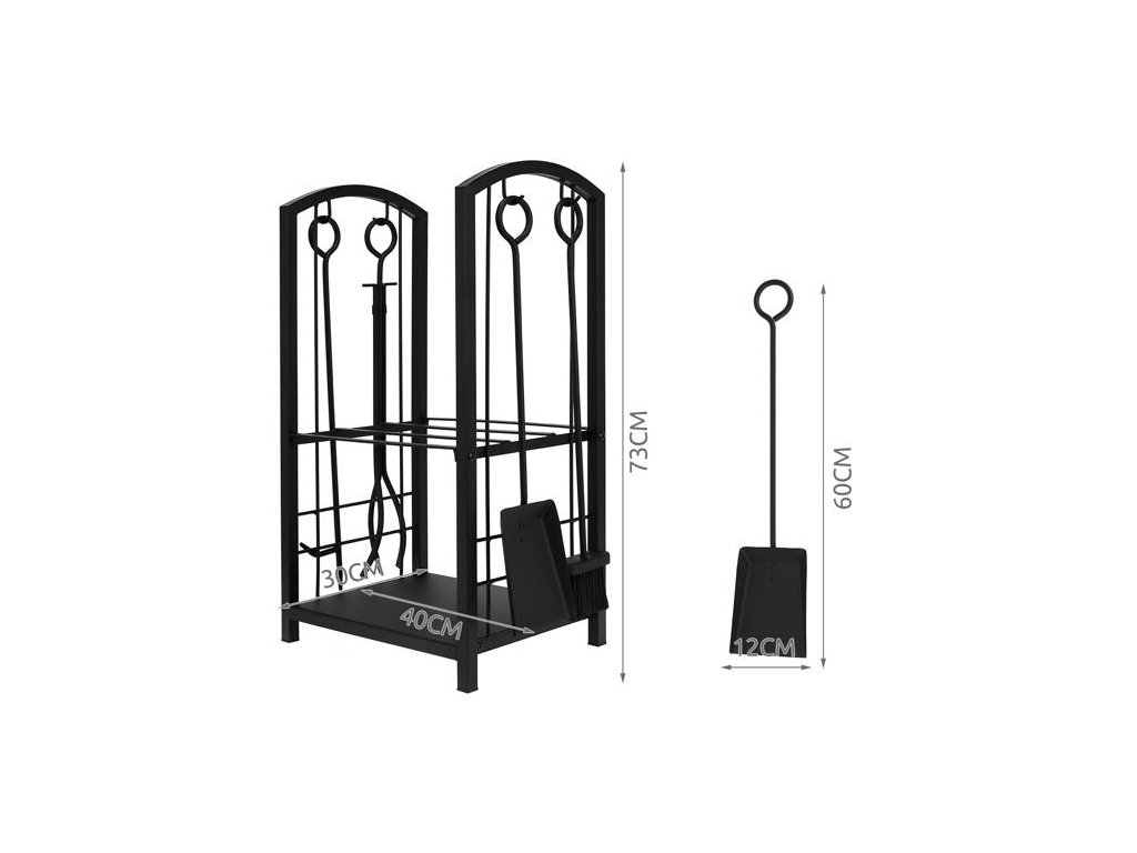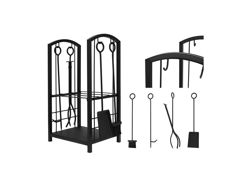 Sada obsahuje všechny prvky potřebné k provozu krbů a jiných typů pecí; kleště, smeták, smeták a poker, díky kterým má sada široké využití a splní očekávání každého. Pohrabáč slouží k rovnoměrnému rozložení hořícího dřeva, uhlí nebo briket a také k čištění roštu pro lepší proudění vzduchu. Stejnou funkci mohou plnit i kleště, které se navíc používají k přenášení hořících polen dřeva nebo uhlí. To je zvláště důležité, když vypadnou z ohniště a je třeba je okamžitě odstranit ze země. Dalšími prvky jsou lopatka a prachovka, které jsou nezbytné pro důkladné čištění pecní desky. Pomáhají odstranit nejen popel, ale případně nespálené zbytky. Příslušenství má speciální úchyty, za které je můžeme zavěsit na háčky na stojanu.