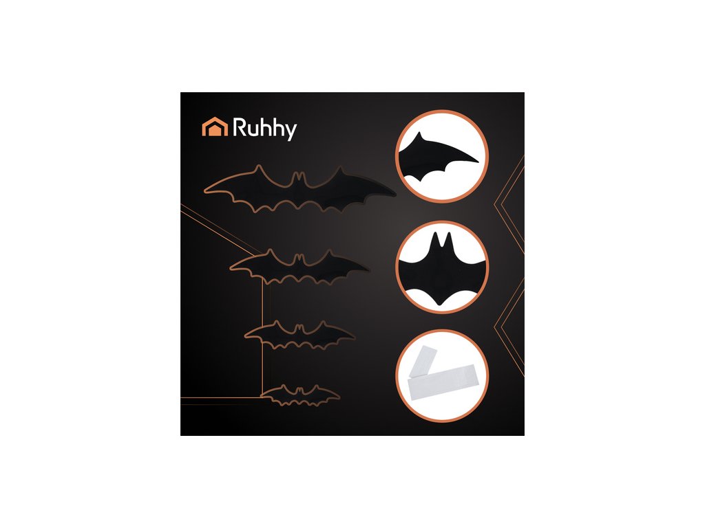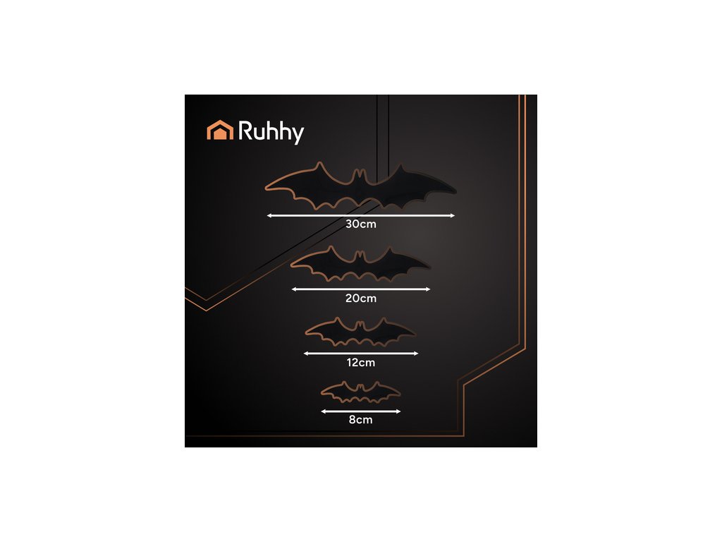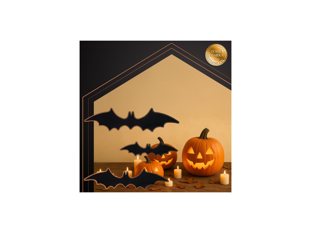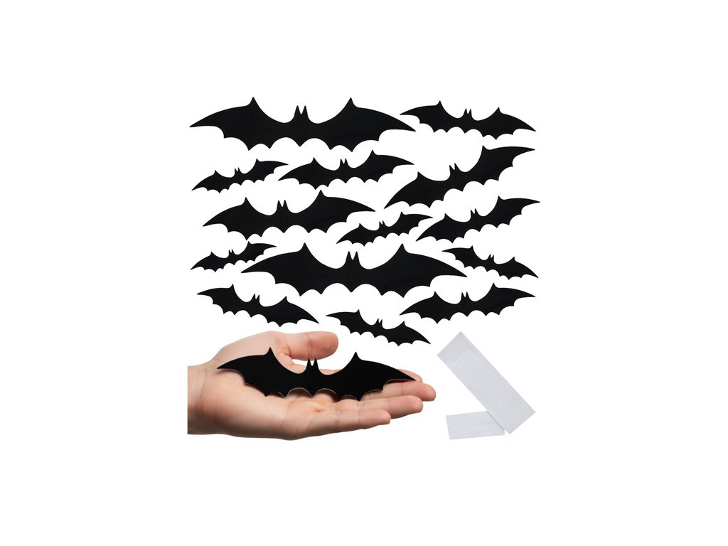 Nastaveno na 56 3D netopýrů V černé barvě, vyrobené z lehkého a odolného plastu. Díky různým velikostem můžete vytvořit výrazné, tmavé aranžmá na Halloween, tematickou párty nebo jako dekoraci interiéru. Sada obsahuje netopýry ve 4 velikostech: 16 velkých (30 x 7,5 cm), 16 středních (20 x 5 cm), 16 malých (12 x 3 cm) a 8 nejmenších (8 x 2 cm) + lepicí páska. Ideální na stěny, okna, dveře a nábytek – kamkoli chcete dodat nádech tajemna a hrůzy.