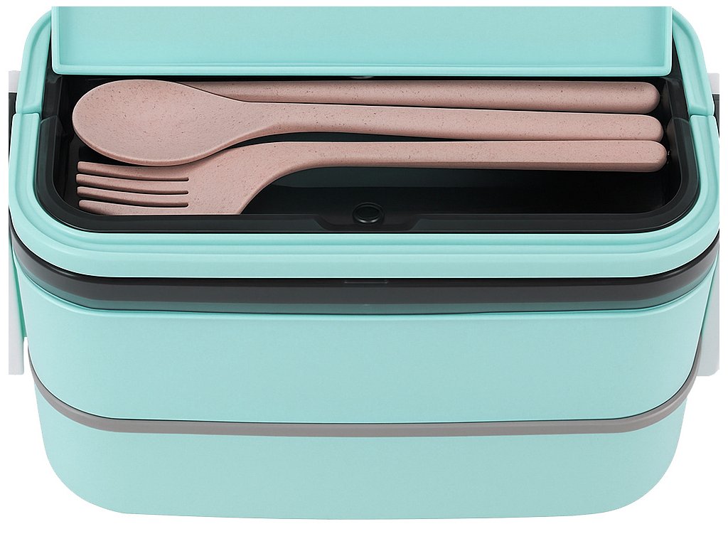Už nemusíte nosit samostatné krabičky na různé produkty. Vestavěné přepážky umožňují oddělit jednotlivé složky a v sadě najdete pohodlné příbory, které jsou uloženy ve speciálním úložném prostoru na víku.