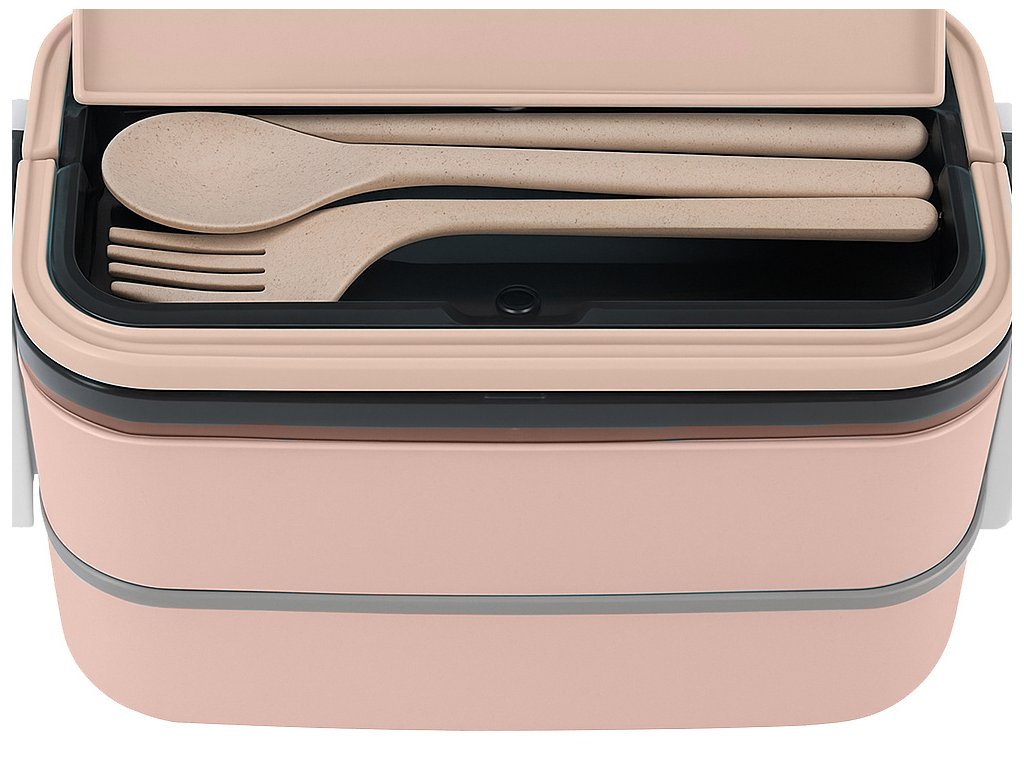 Už nemusíte nosit samostatné krabičky na různé produkty. Vestavěné přepážky umožňují oddělit jednotlivé složky a v sadě najdete pohodlné příbory, které jsou uloženy ve speciálním úložném prostoru na víku.