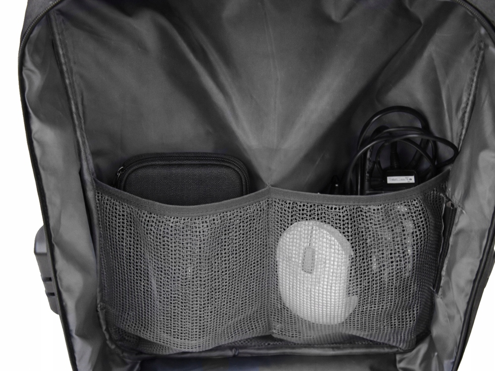Batoh má zabudovaný USB port, který umožňuje pohodlné nabíjení telefonu bez nutnosti vyndávat powerbanku. Jedná se o praktické řešení pro osoby, které jsou neustále v pohybu a potřebují stálý přístup k energii.