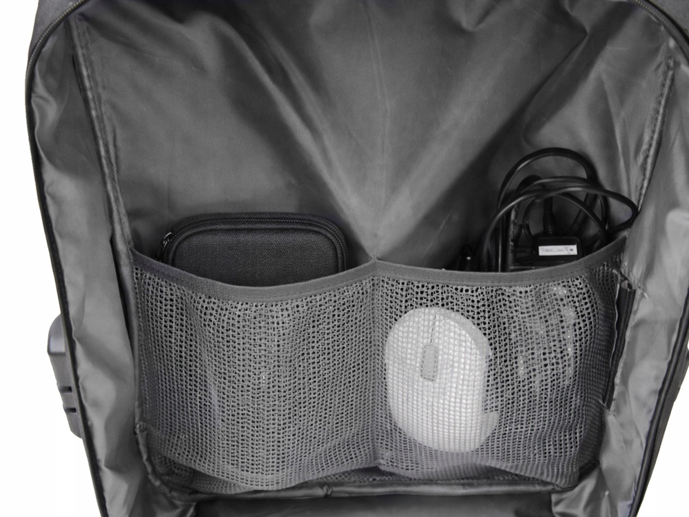 Batoh má zabudovaný USB port, který umožňuje pohodlné nabíjení telefonu bez nutnosti vyndávat powerbanku. Jedná se o praktické řešení pro osoby, které jsou neustále v pohybu a potřebují stálý přístup k energii.