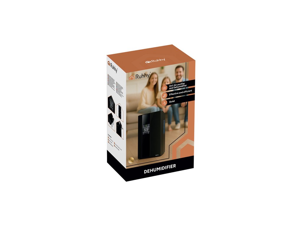 Pečovat o čistý, suchý a čerstvý vzduch ve vaší domácnosti díky zařízení 2 v 1. RUHHY Tato kombinace odvlhčovače a čističky vzduchu účinně odstraňuje přebytečnou vlhkost a zároveň pomáhá osvěžit místnost, odstraňuje dusno a zlepšuje kvalitu dýchání. Je tichá, energeticky úsporná, s dotykovou obrazovkou, dálkovým ovládáním a inteligentní regulací vlhkosti, takže je ideální do koupelen, kuchyní a ložnic. Funguje automaticky, přesně podle potřeby.