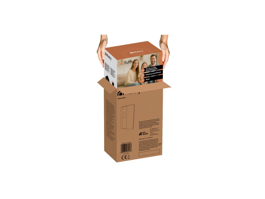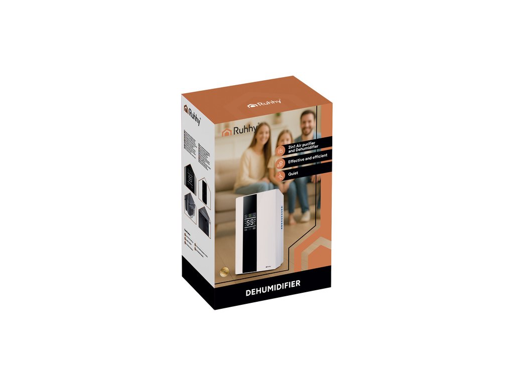 Pečovat o čistý, suchý a čerstvý vzduch ve vaší domácnosti díky zařízení 2 v 1. RUHHY Tato kombinace odvlhčovače a čističky vzduchu účinně odstraňuje přebytečnou vlhkost a zároveň pomáhá osvěžit místnost, odstraňuje dusno a zlepšuje kvalitu dýchání. Je tichá, energeticky úsporná, s dotykovou obrazovkou, dálkovým ovládáním a inteligentní regulací vlhkosti, takže je ideální do koupelen, kuchyní a ložnic. Funguje automaticky, přesně podle potřeby.