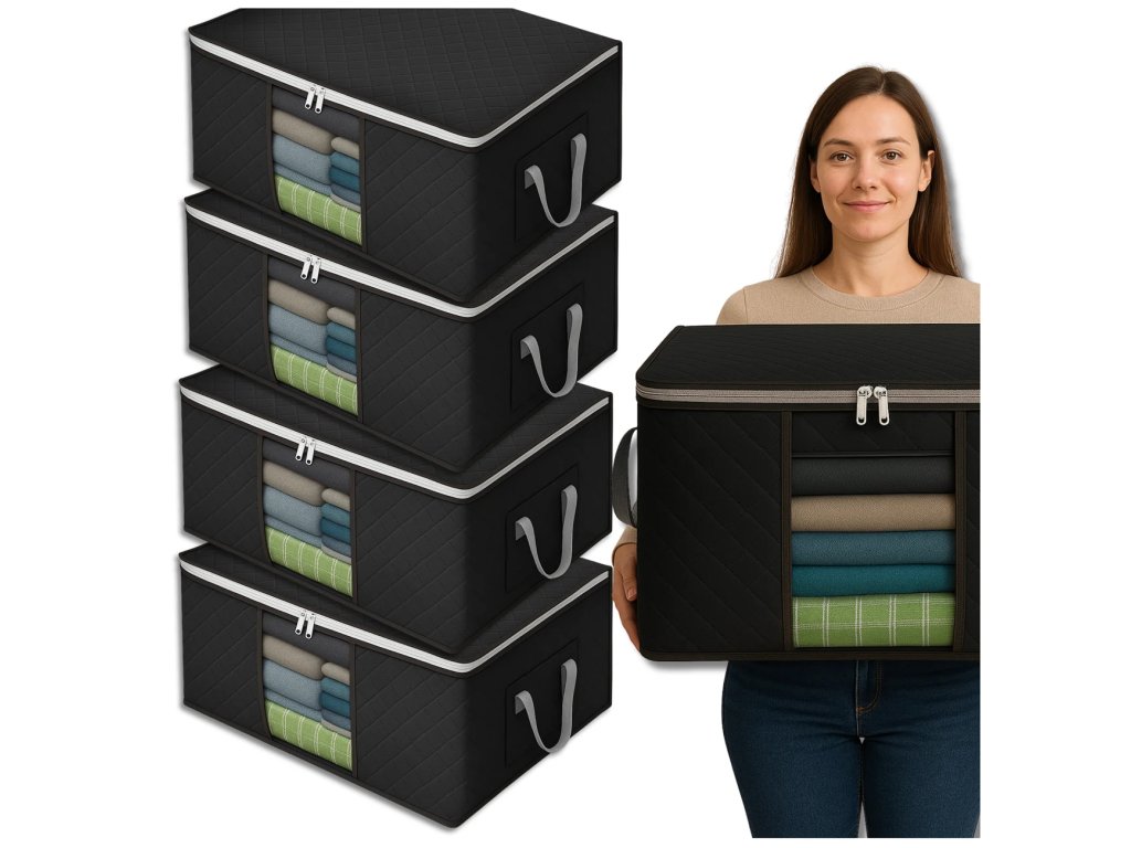 Už vás nebaví chaos ve skříni a hromady sezónního oblečení, ložního prádla a přikrývek? Dejte sbohem nepořádku a přivítejte dokonalou organizaci s naším ORGANIZÉREM – sadou 4 velkých potahů na ložní prádlo, oblečení a přikrývky! Tato praktická sada promění vaši šatní skříň, komoru nebo ložnici v elegantní a přehledný prostor. S každým potahem získáte obrovský objem 90 litrů pro bezpečné uložení bund, polštářů, ručníků a dalšího textilu. Zapomeňte na starosti s prachem, moly a nečistotami – vaše věci zůstanou svěží a chráněné.