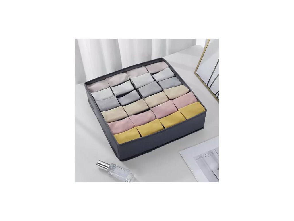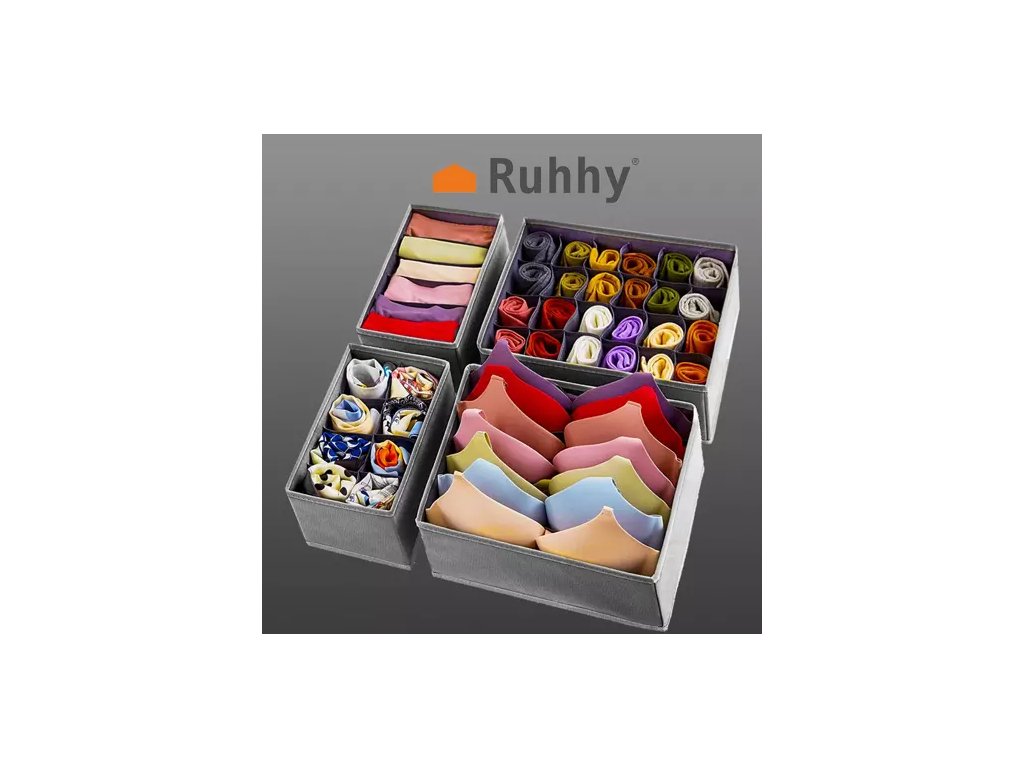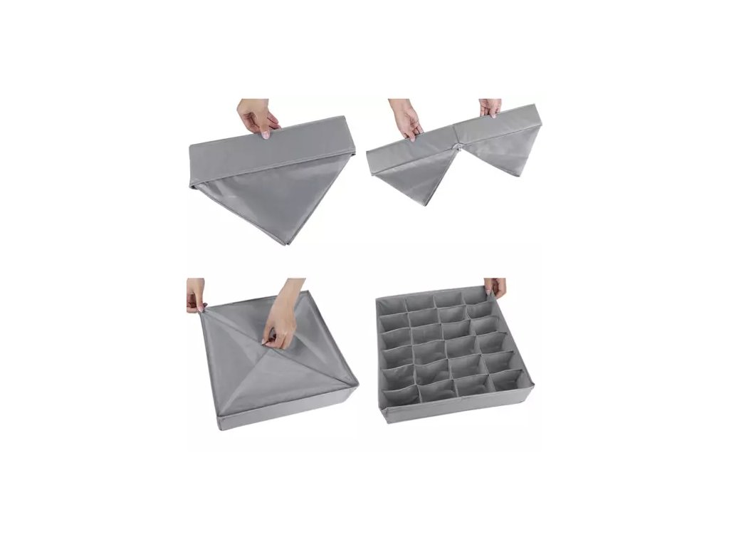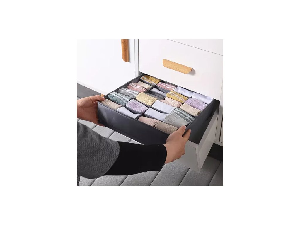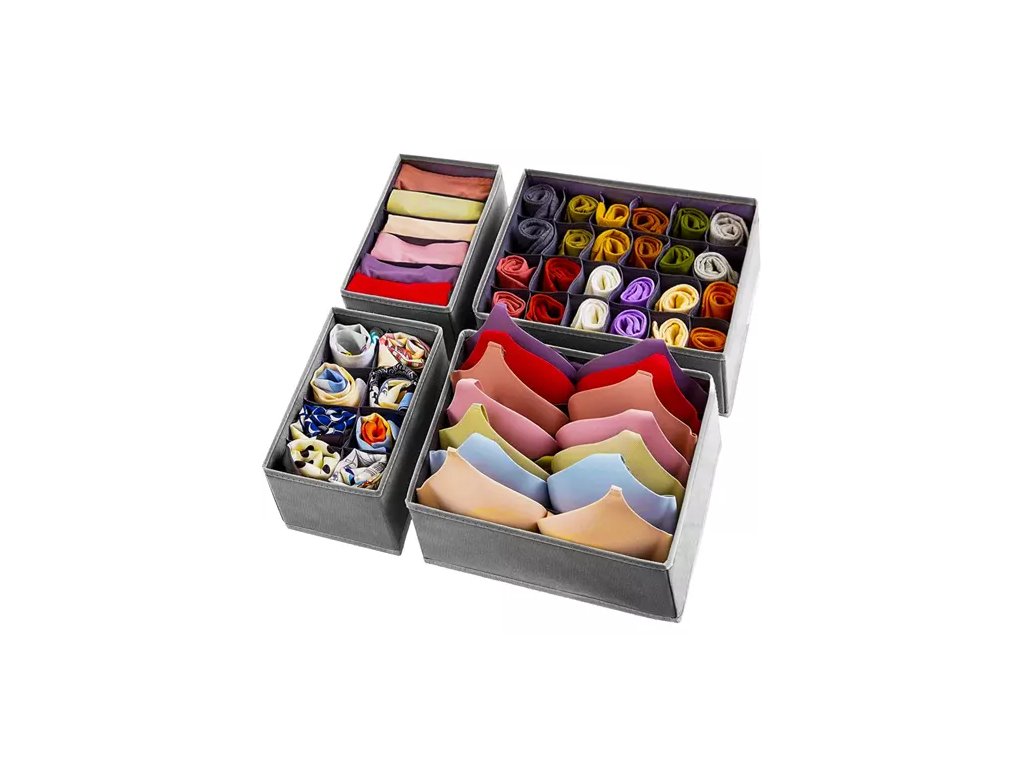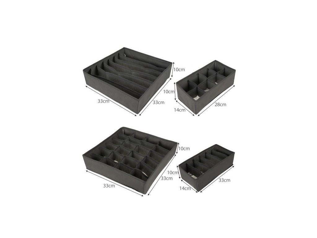 Organizér na spodní prádlo v šedé barvě je vyroben z netkané textilie a je dodáván v sadě 4 kusů s různými přihrádkami. Tento praktický doplněk prodeje je ideální pro udržení pořádku ve vašem šatníku. Organizér patří do kategorie organizérů a organizérů do šatníku, které pomáhají optimalizovat prostor a usnadňují hledání oblečení.