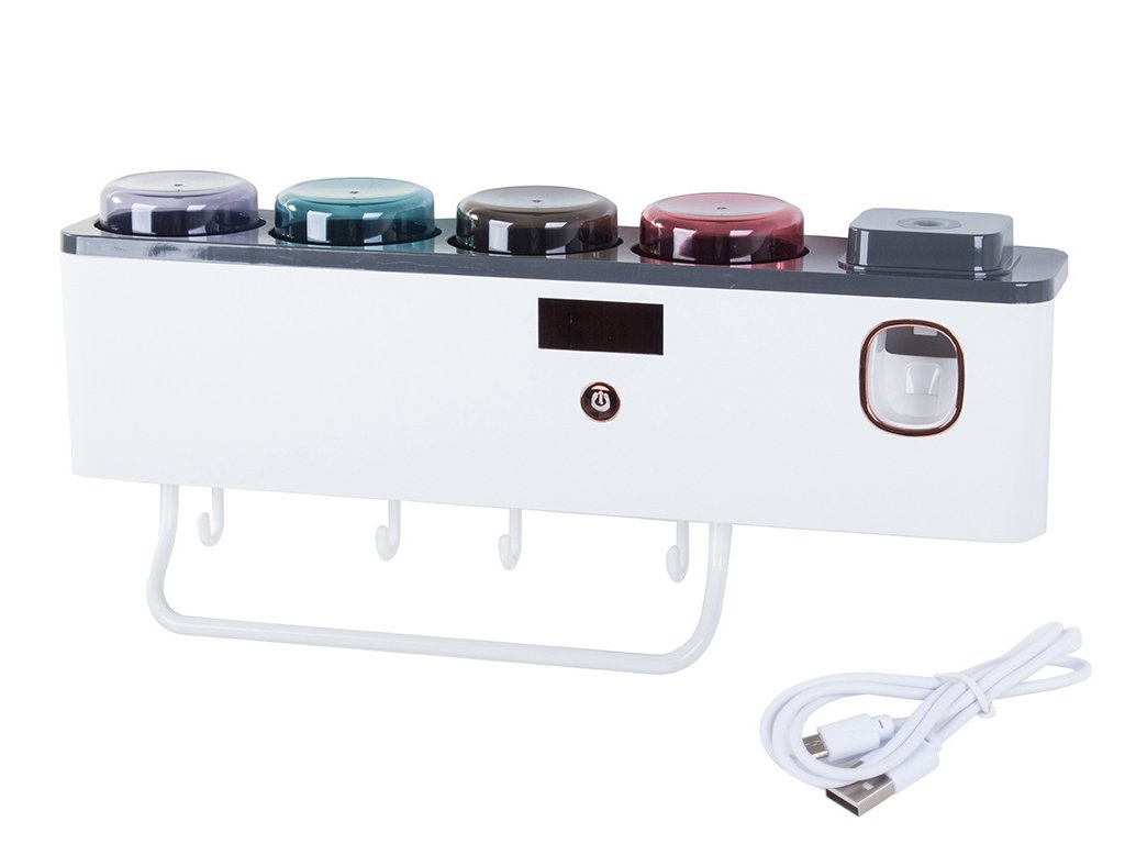 Organizér má prostor pro čtyři zubní kartáčky a UV sterilizátor pro dezinfekci.
